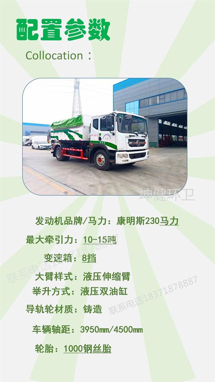 城市小区建筑勾臂式垃圾车 东风12立方工地自卸车
