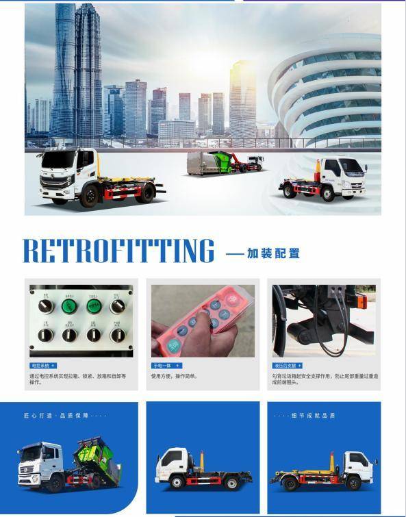 蓝牌重汽豪曼10吨勾臂式垃圾车 可下地下室的勾臂建筑自卸车