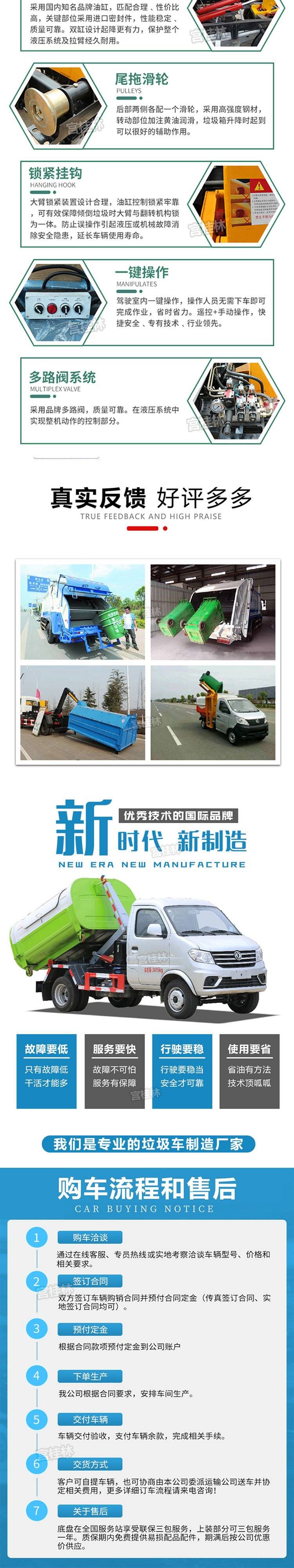 环卫垃圾清运车 小型3方勾臂式垃圾车 结构简单 带自卸功能