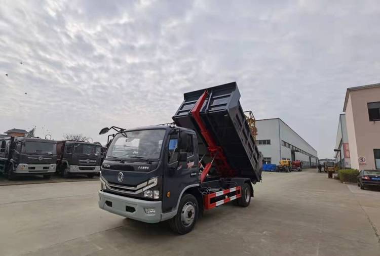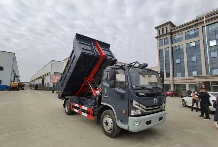 东风多利卡6方勾臂式垃圾车 侧挂式污泥自卸车 自卸式垃圾转运车