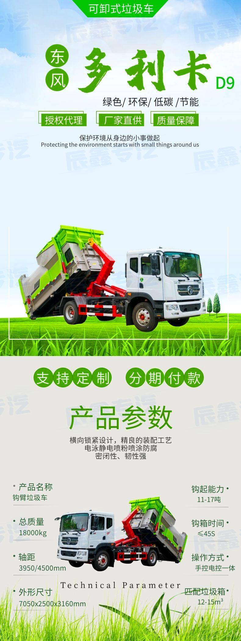 东风18吨 自卸式勾臂垃圾车 10方12方建筑垃圾清运专用车 大容量
