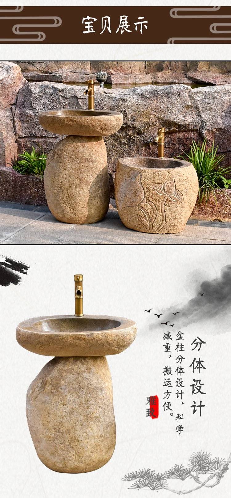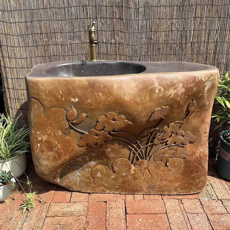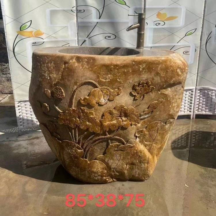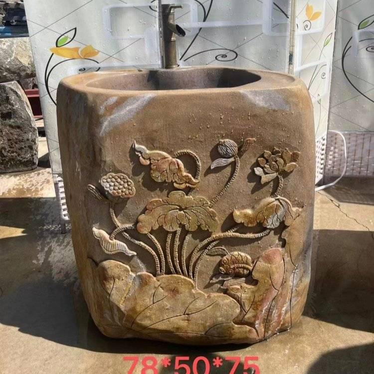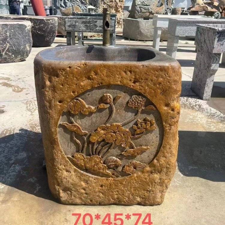 天然整块石材砚石洗手盆户外庭院花园复古石雕花洗衣池艺术水槽