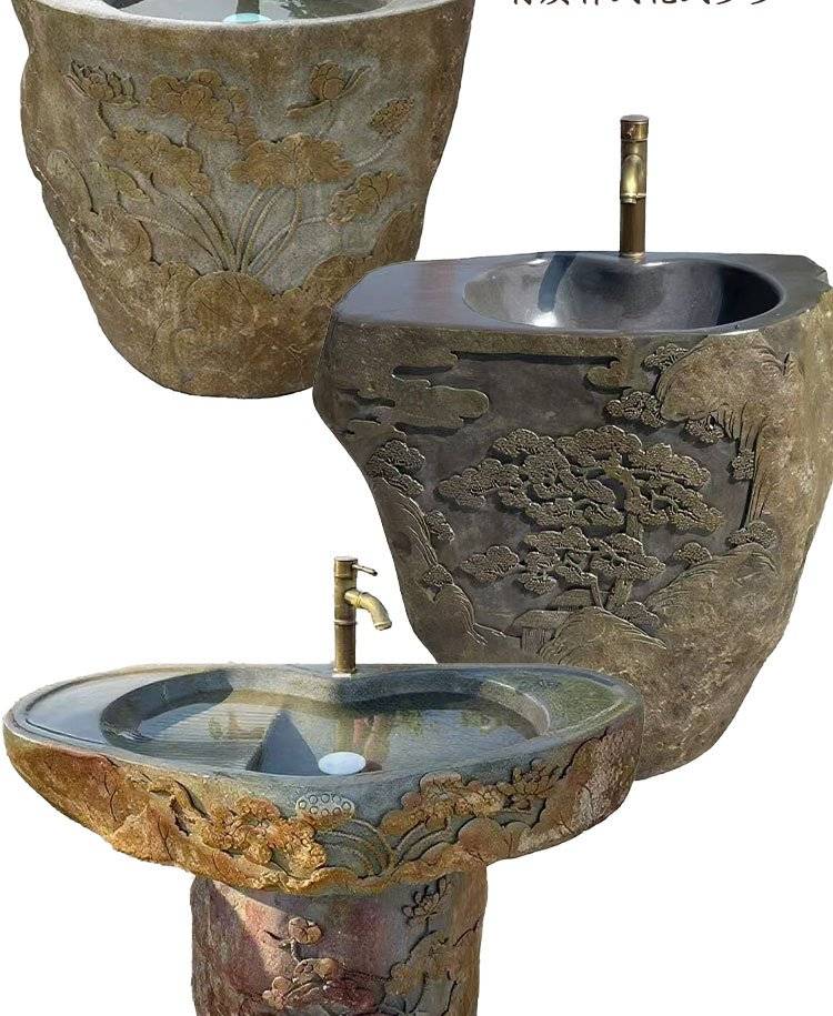 千铭石雕现代简约洗手盆洗手池庭院天然大理石手工圆雕艺术摆件