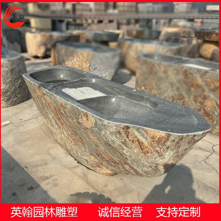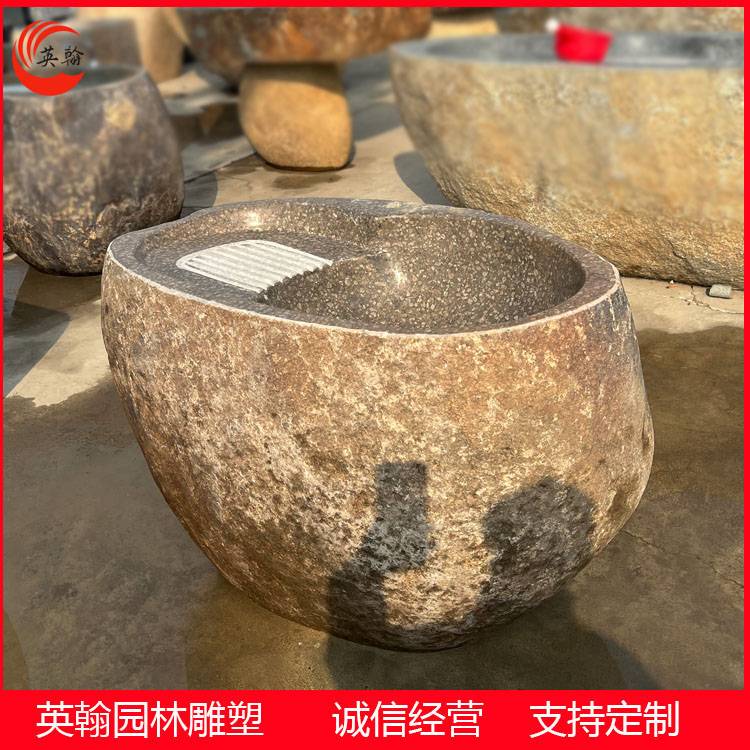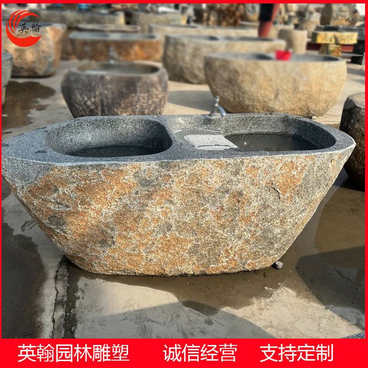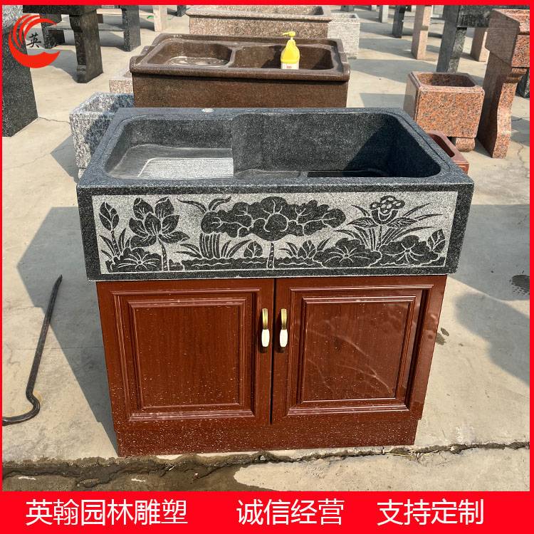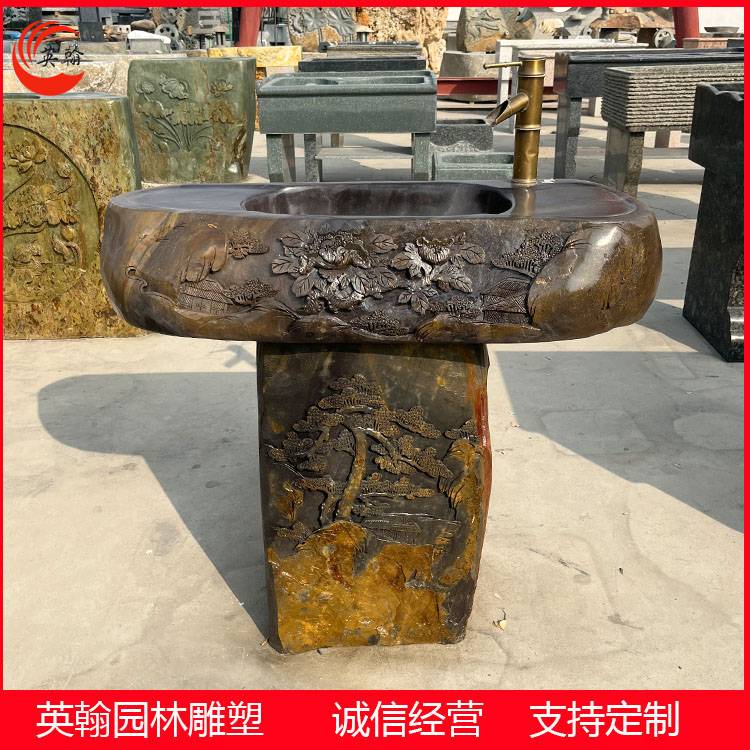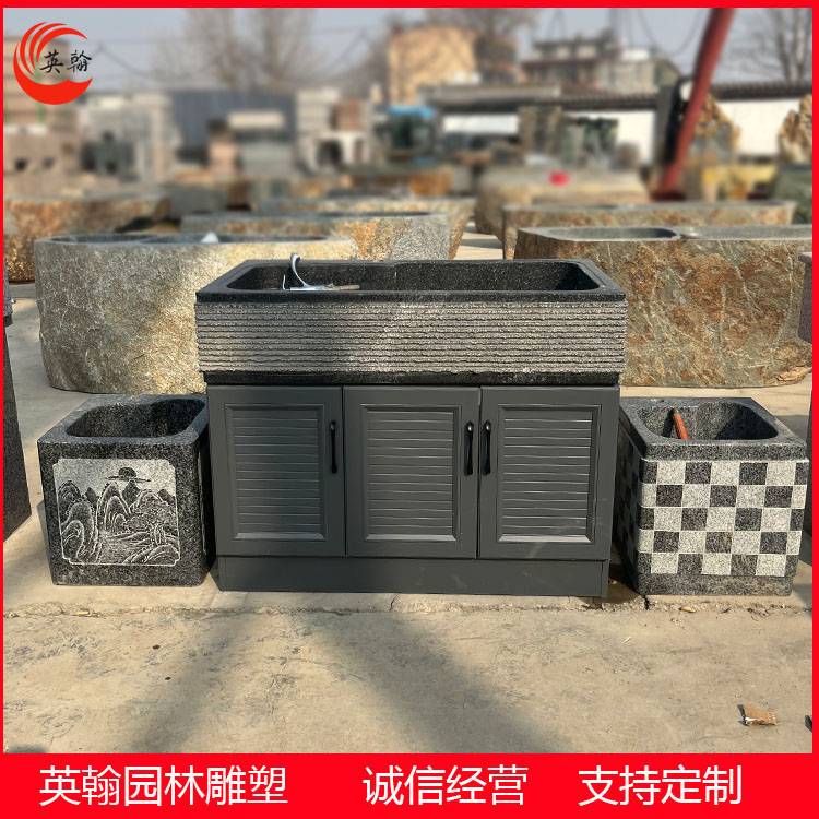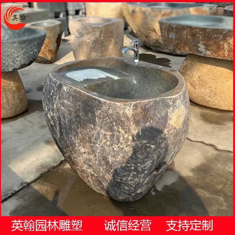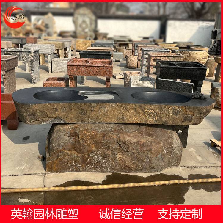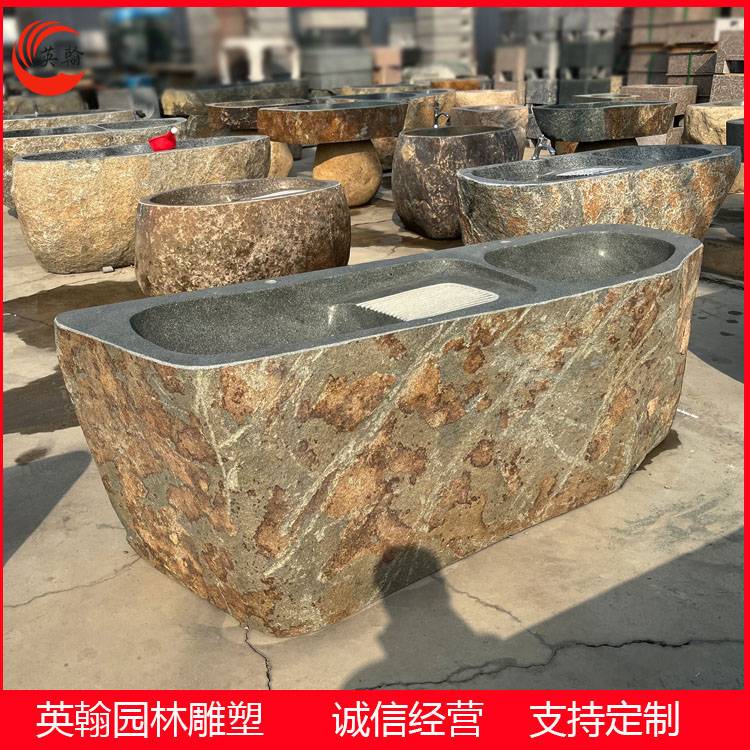 鹅卵石洗手盆 庭院别墅阳台 一体洗漱盆带洗衣池石复古艺术洗面盆
