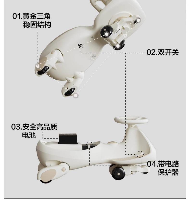贝易电动扭扭车儿童防侧翻宝宝汽车可坐大人摩托车小孩四轮卡丁车