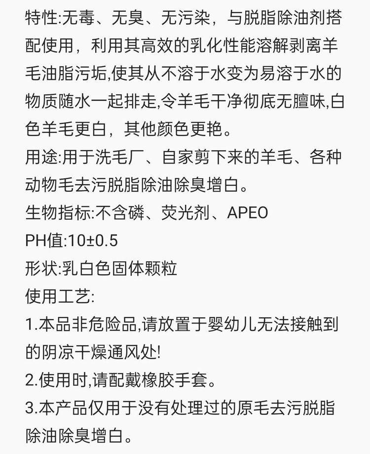 SW-506搭配脱脂除油剂用于原毛以及羊毛衫去污脱脂除臭增白