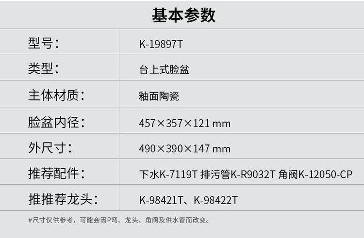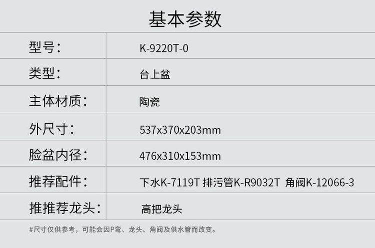 科᷂勒台上盆K-9220T/19897拉蒂纳长方形时尚脸盆台盆陶瓷面盆台