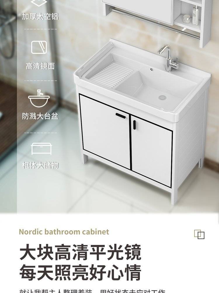 太空铝洗衣柜陶瓷洗衣盆带搓板阳台池室外落地柜洗手一体台盆