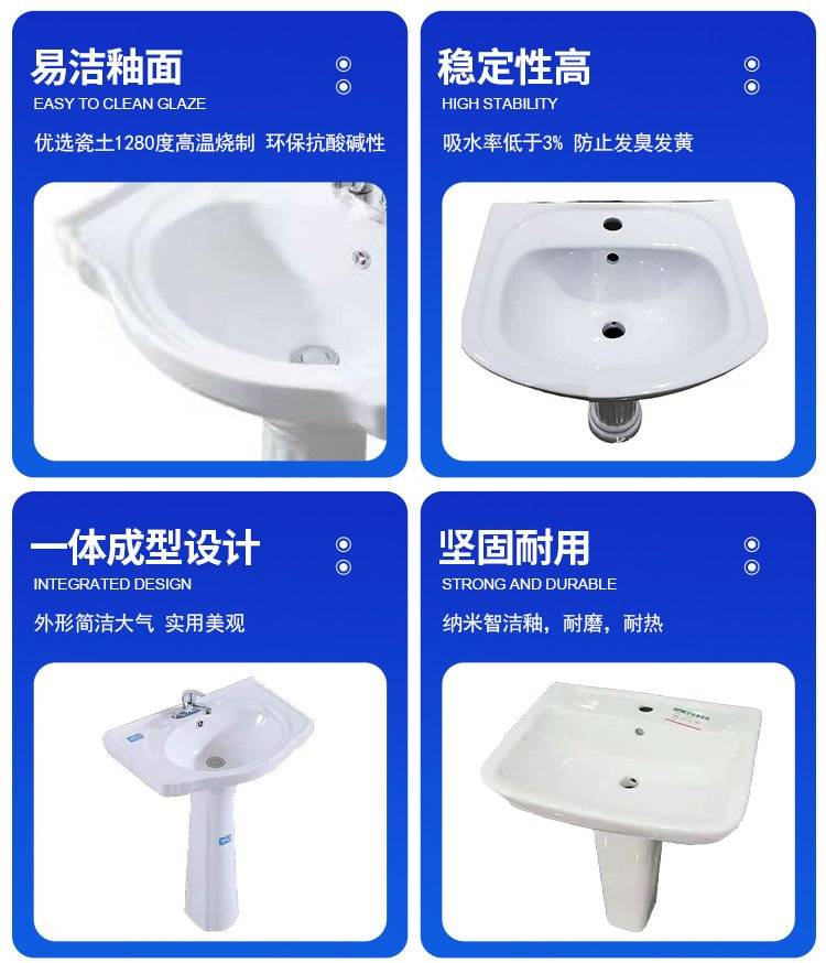 卫生间白色洗手盆家用立柱式洗漱台陶瓷一体盆
