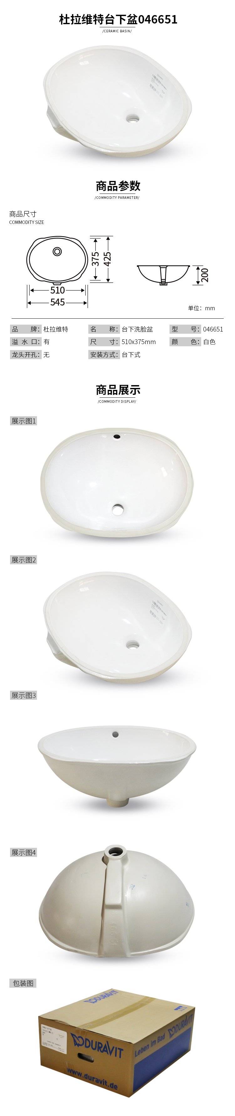 德力菲杜拉维特嵌入式脸盆家用浴室台下洗手盆卫生陶瓷易洁046651