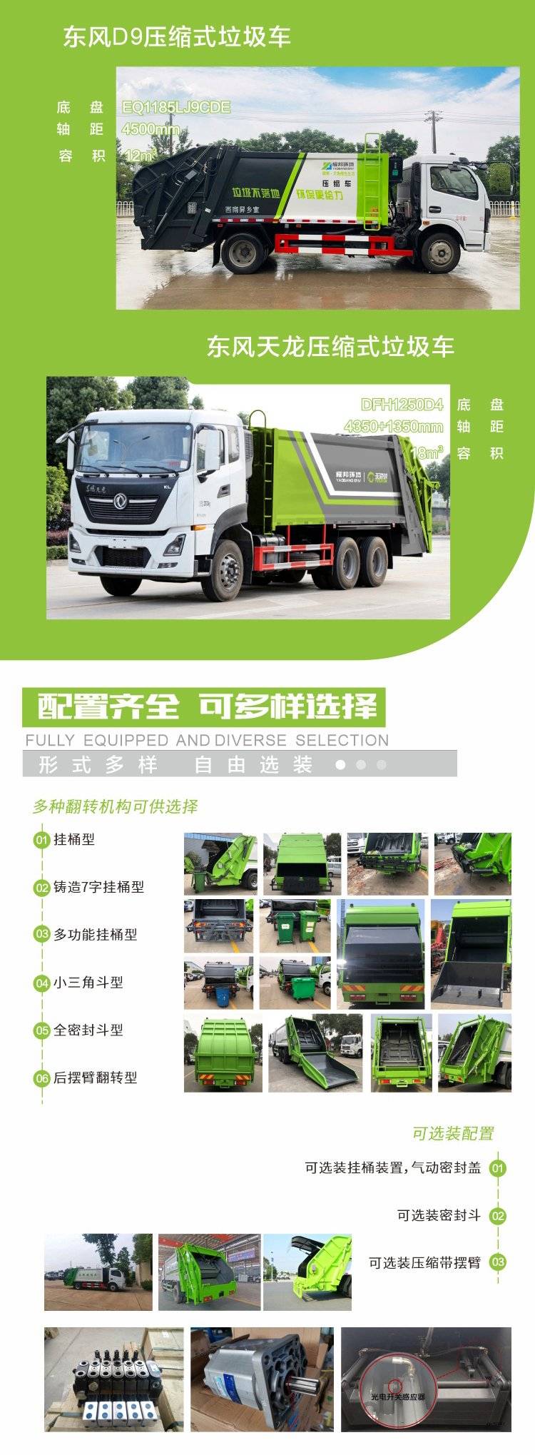 东风途逸后装式压缩垃圾车 废渣清运车 带自卸功能 装载量大
