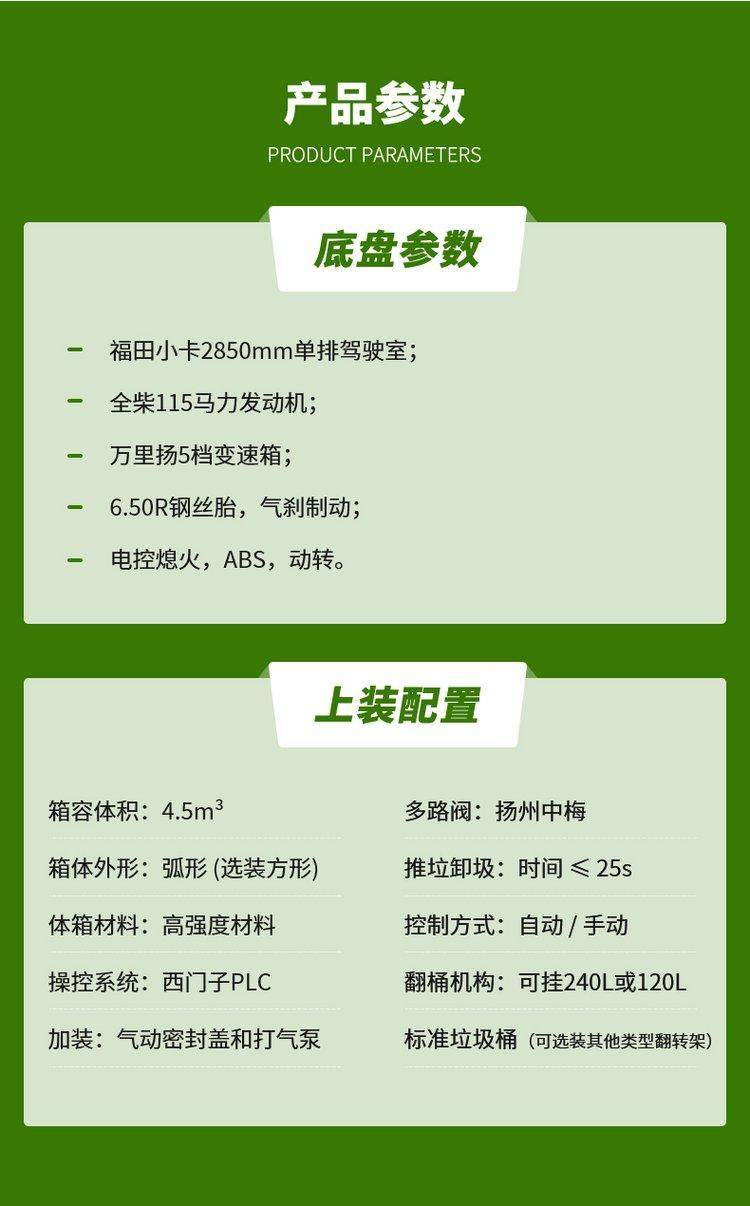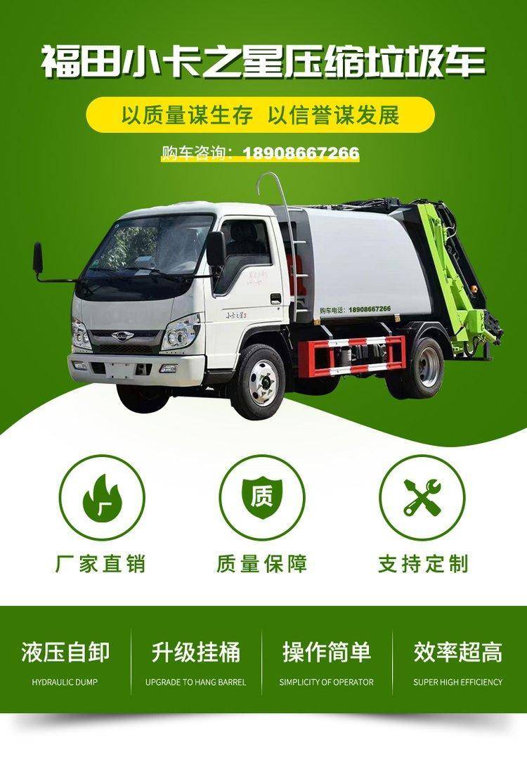 4,5方蓝牌压缩垃圾车 后挂桶式自卸式垃圾清运车