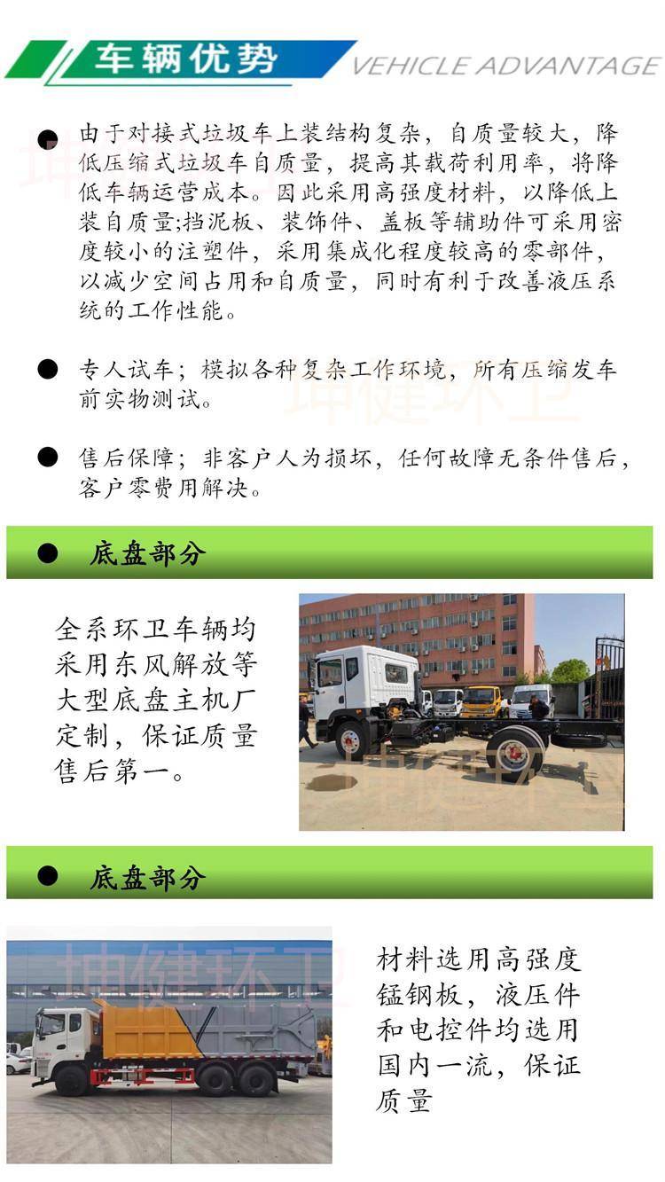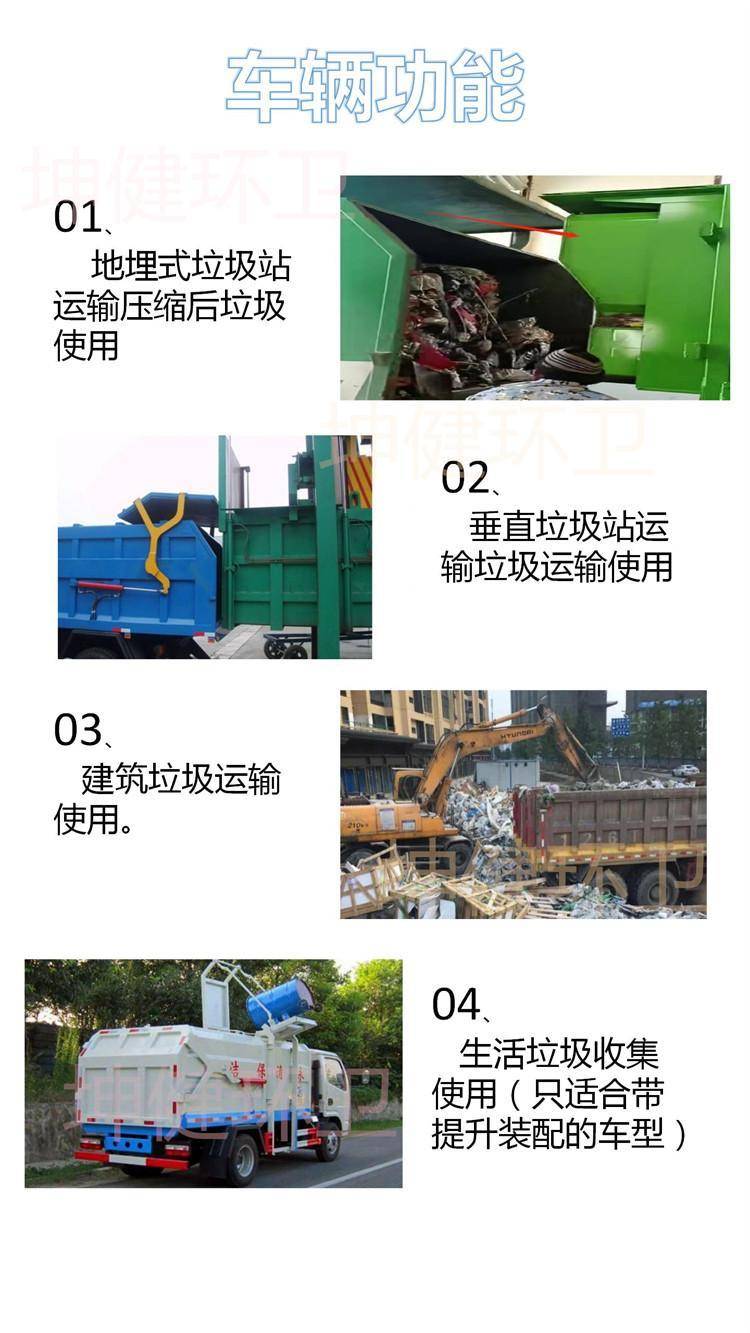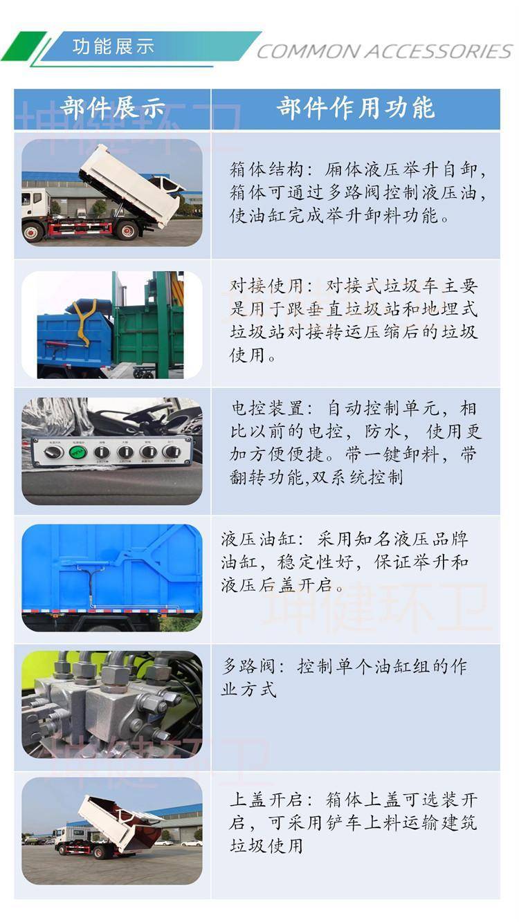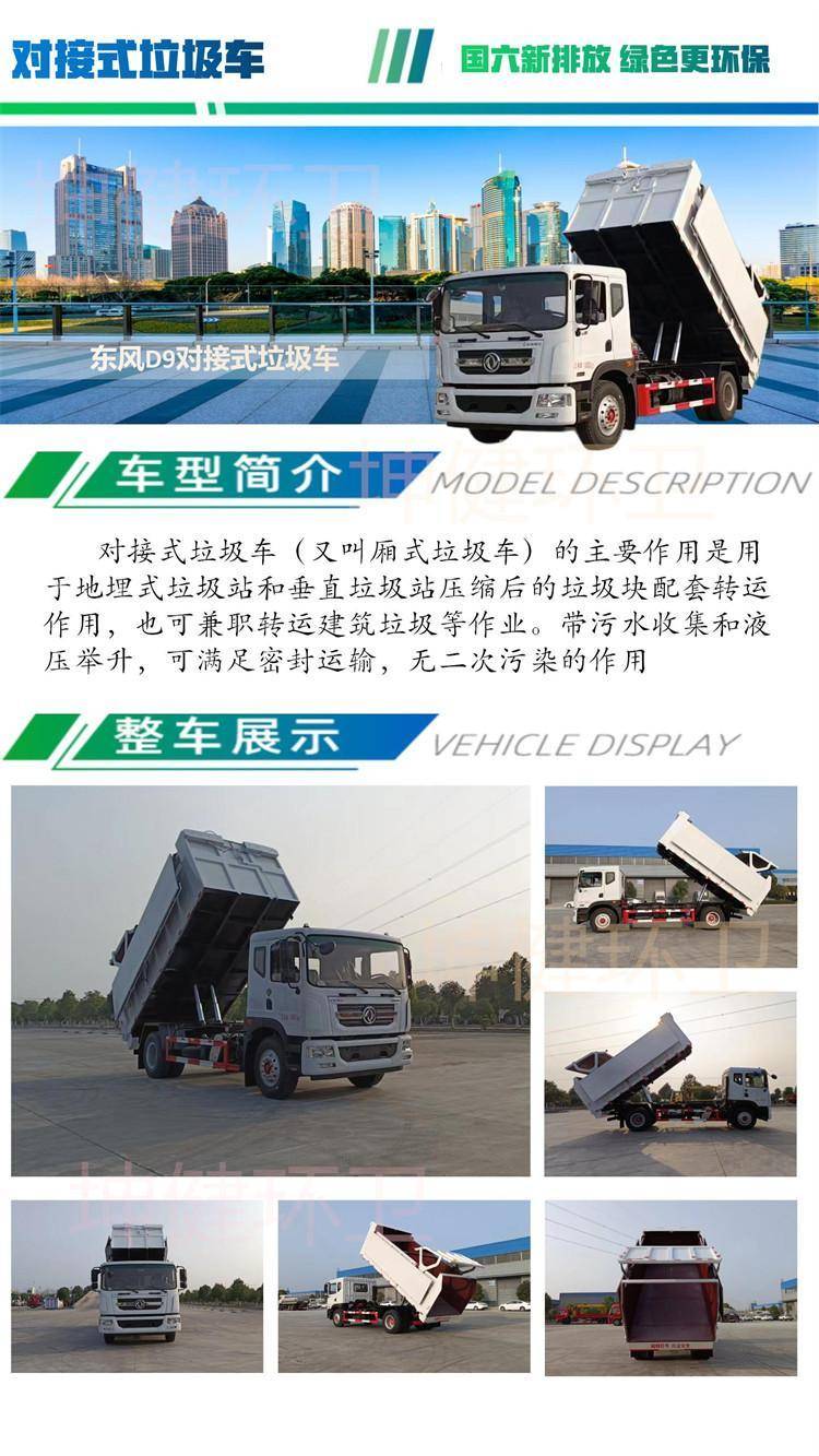 压缩式对接垃圾车 带自卸举升 液压开启的厢式运输车 垃圾块转运