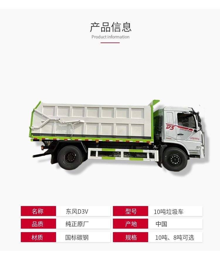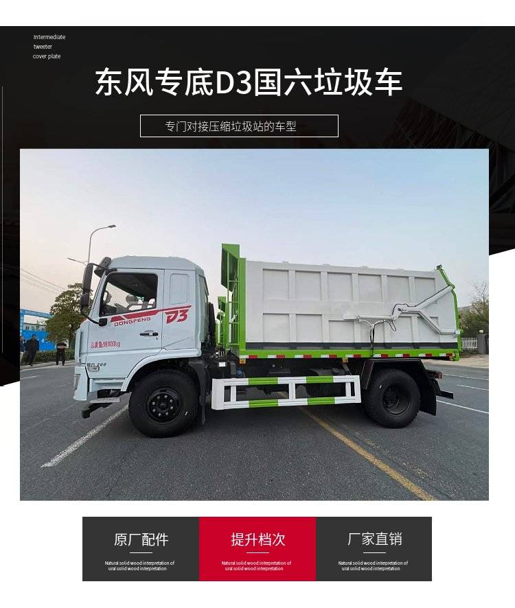 东风D3国六自卸式垃圾车 10吨带举升对接压缩垃圾站专用车