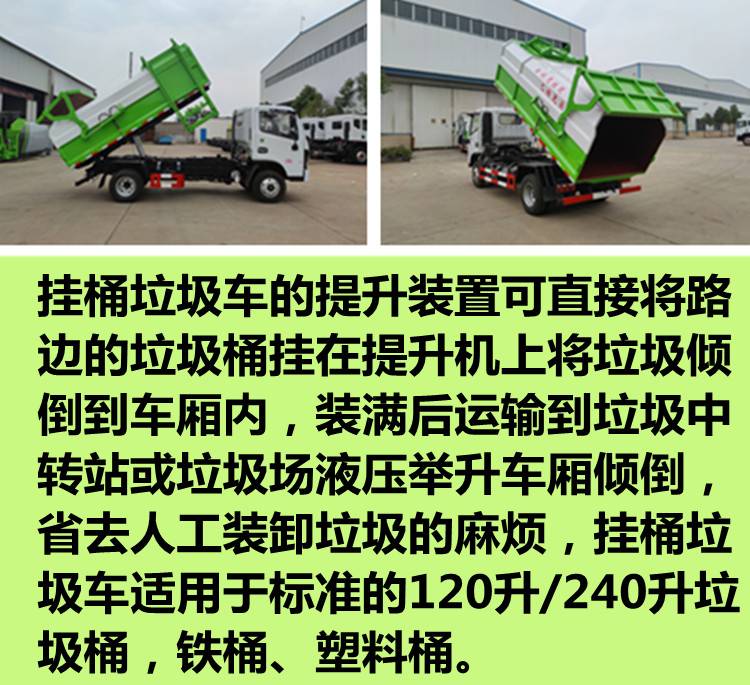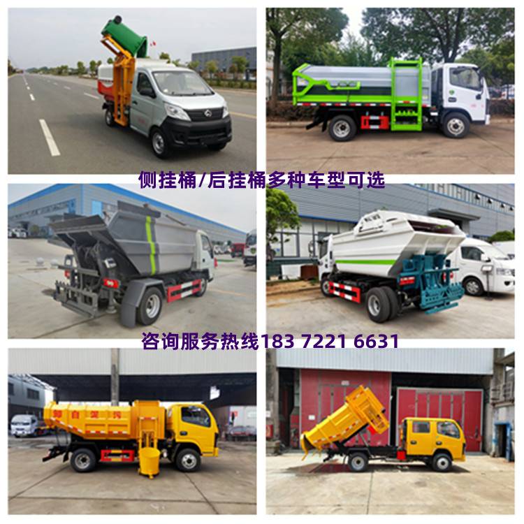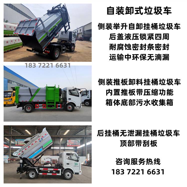 侧挂桶5立方自装卸式垃圾车 压缩推铲卸料举升自卸可选 东风国六