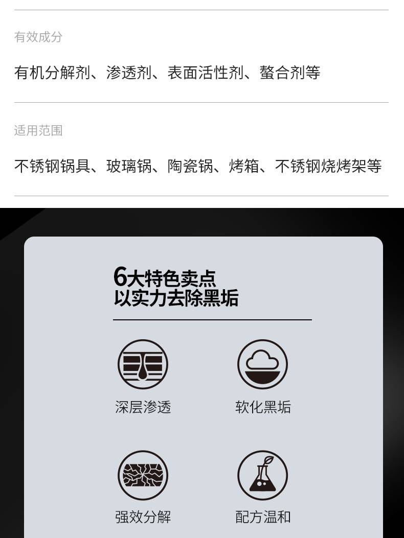 油污净 锅底黑垢清洁剂清洗锅底去除黑焦渍厨房烧焦除垢油污