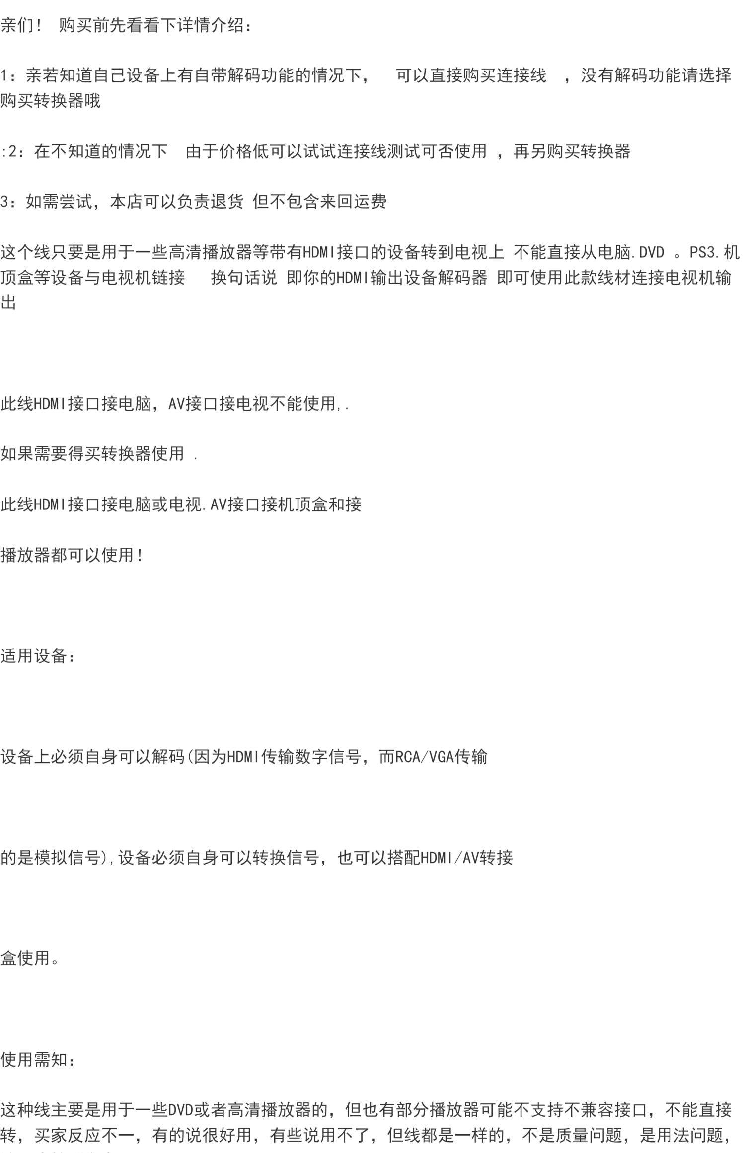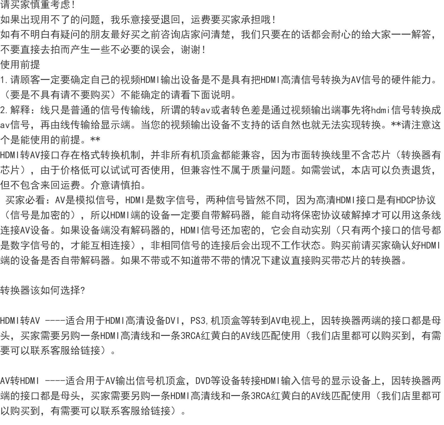 1米 1.5米 HDMI转AV 套装 AV转HDMI套装
