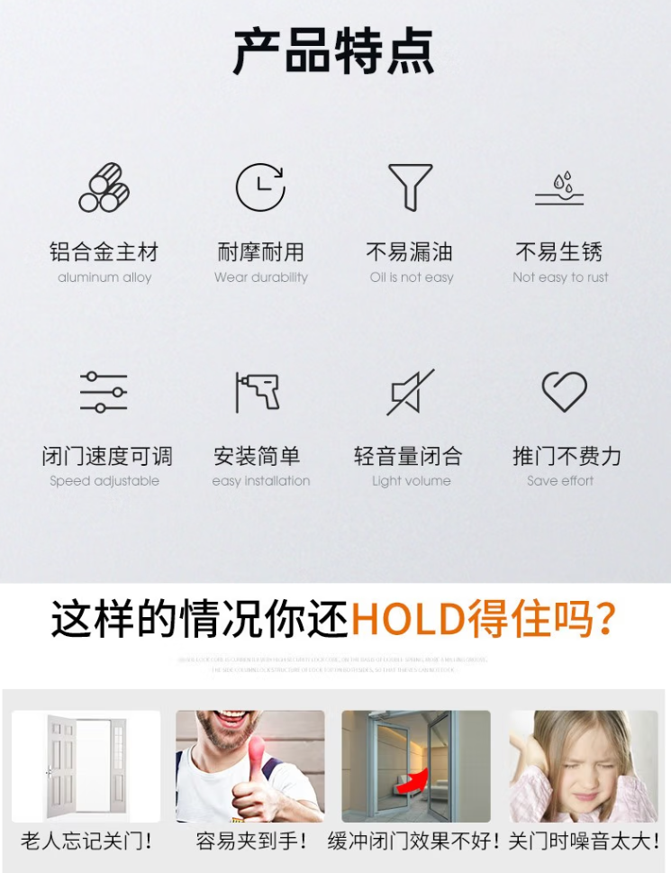 液压缓冲闭门器 75KG/85KG可调速 轻型防火门自动闭门装置