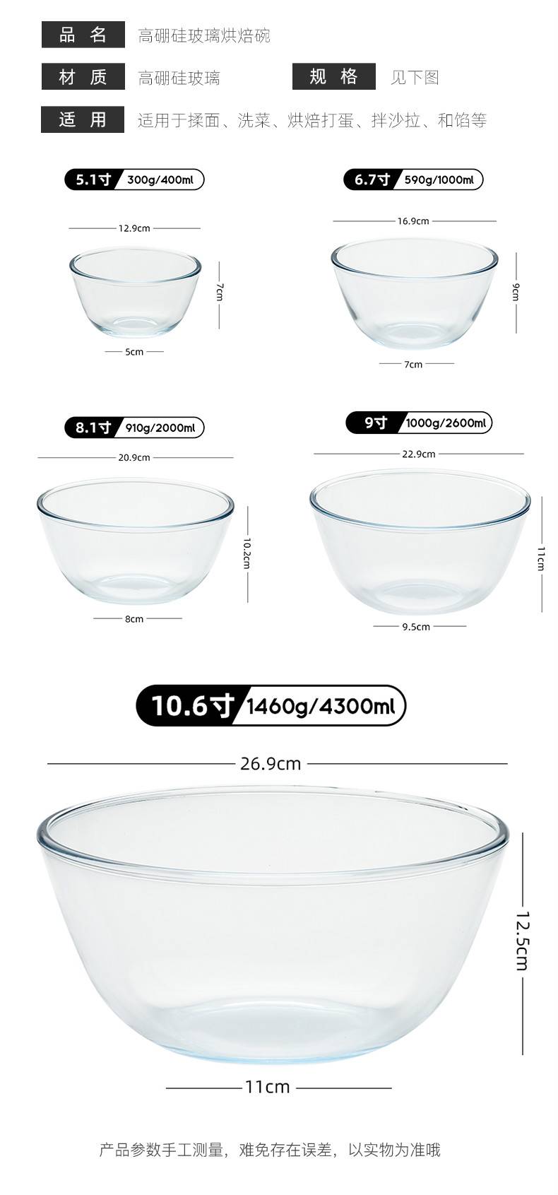 烘焙用高硼硅玻璃和面盆料理碗家用活面揉面盆烘培打蛋发面盆碗具