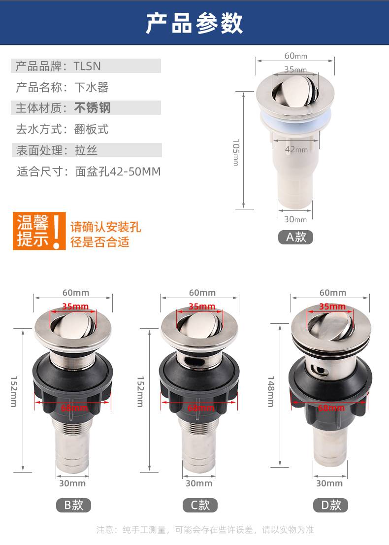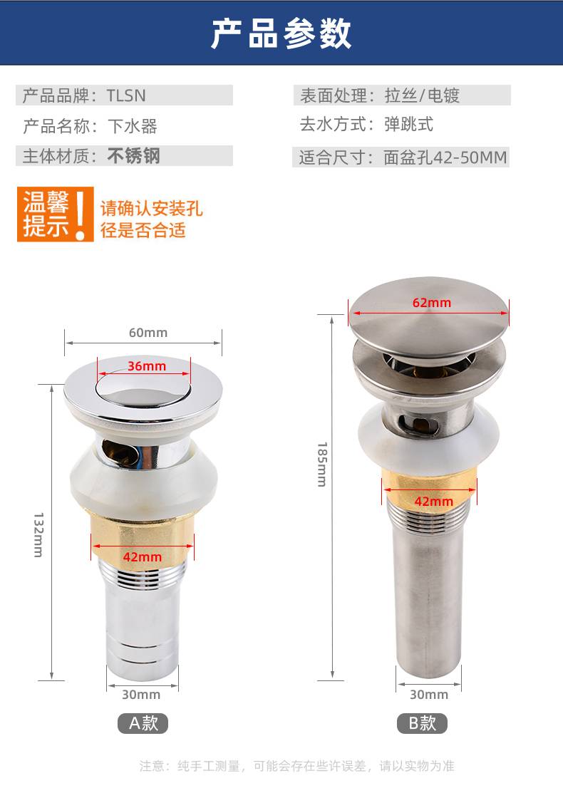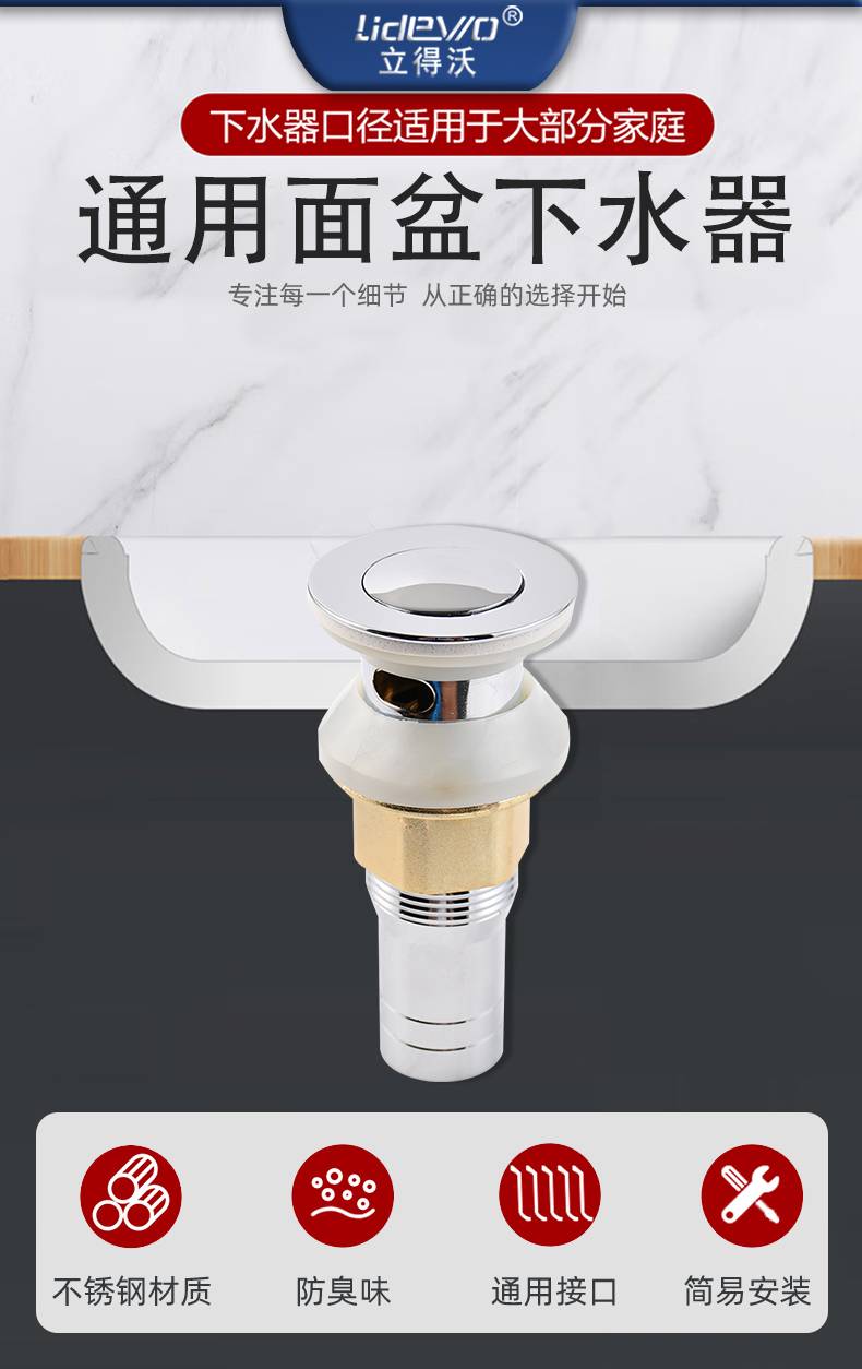 洗手盆洗脸盆面盆下水器下水管台盆洗手池玻璃盆弹跳带提篮排水器