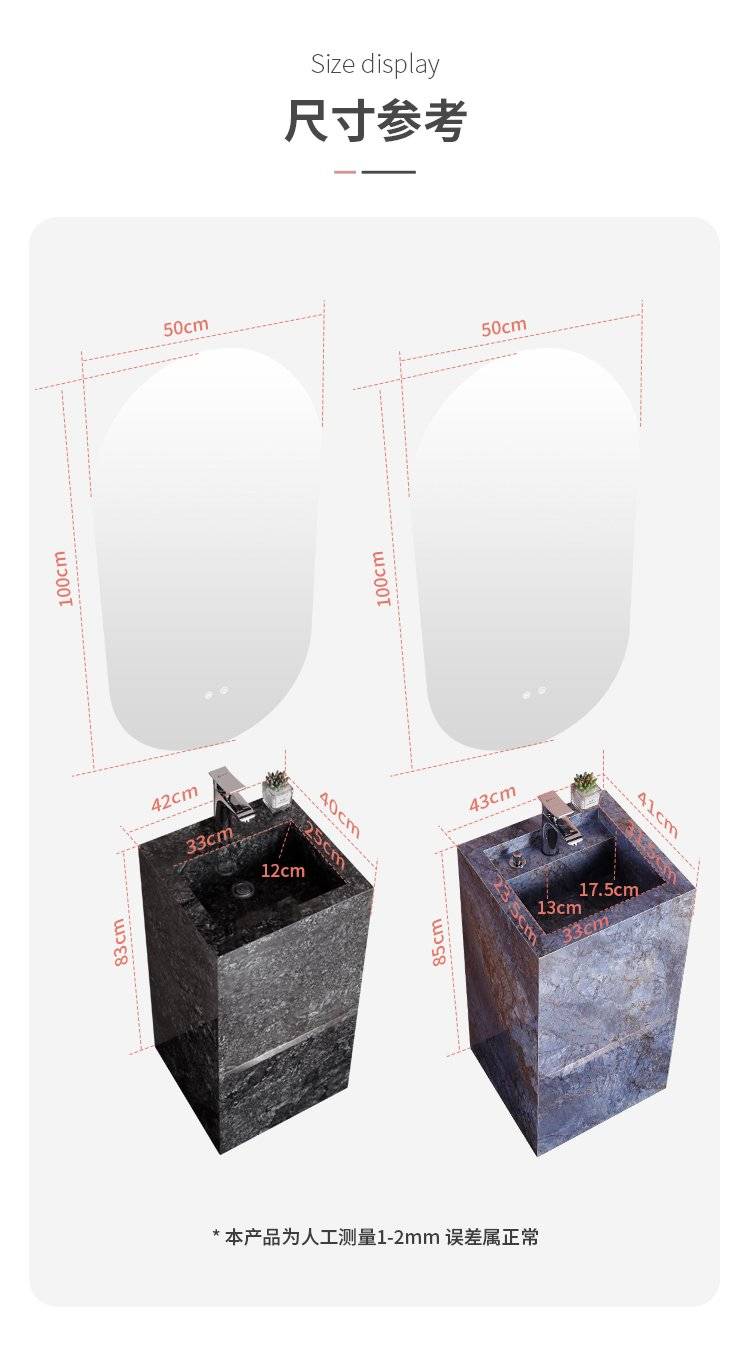 岩板连体立柱盆轻奢简约洗手盆彩色彩花洗面盆