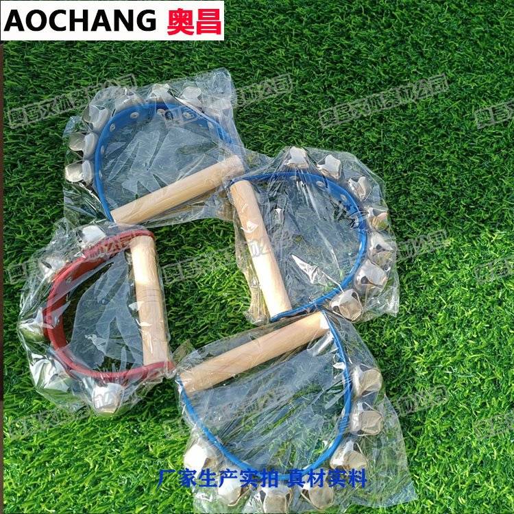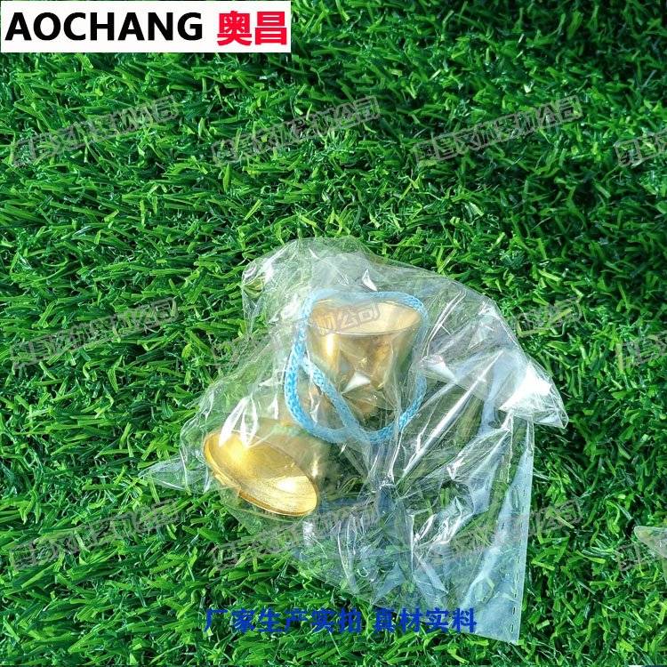 碰铃也叫碰钟,形状如铃,一副两个用绳串联,互相碰撞而发音,无固定高音,常用于乐器合奏及戏曲伴奏中,为节奏乐器。由于碰铃的振动律长,共鸣大,演奏时不要重击。要停止发音时,往胸前一按即可。