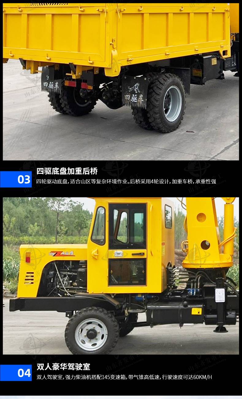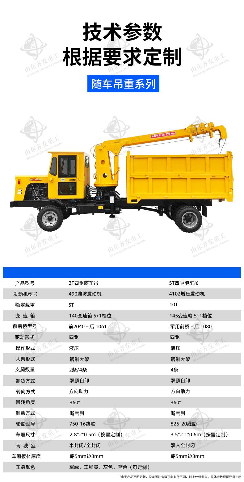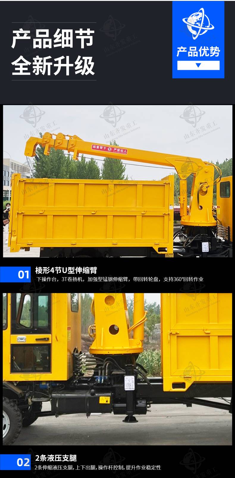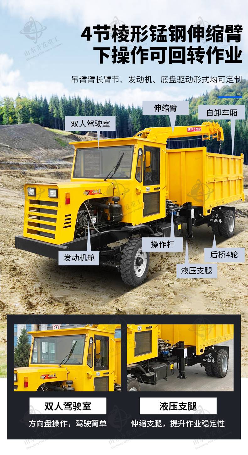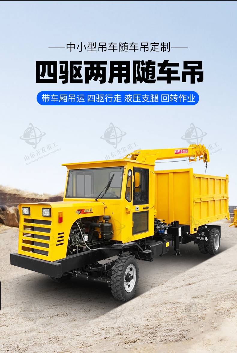 齐发重工四不像随车吊四驱自制底盘自卸运输吊