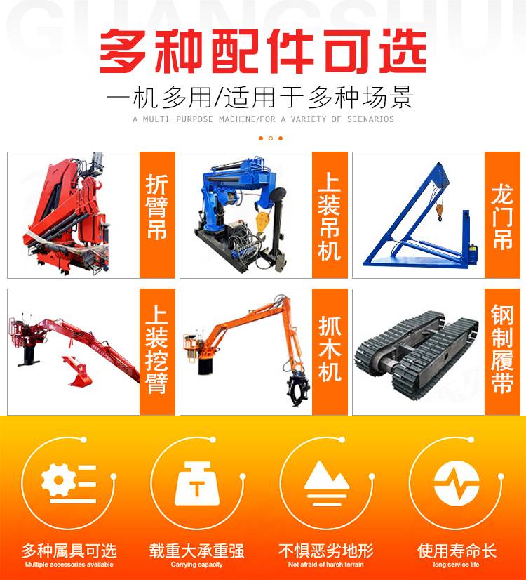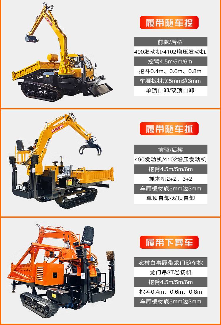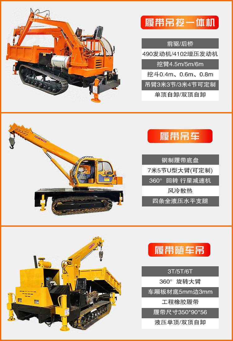 履带随车吊液压自卸吊重3吨载重8吨装载运输车全地形爬坡运输车