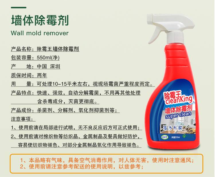 墙体除霉剂 白色墙面家具卫生间厨房墙纸霉斑去除回南天除霉