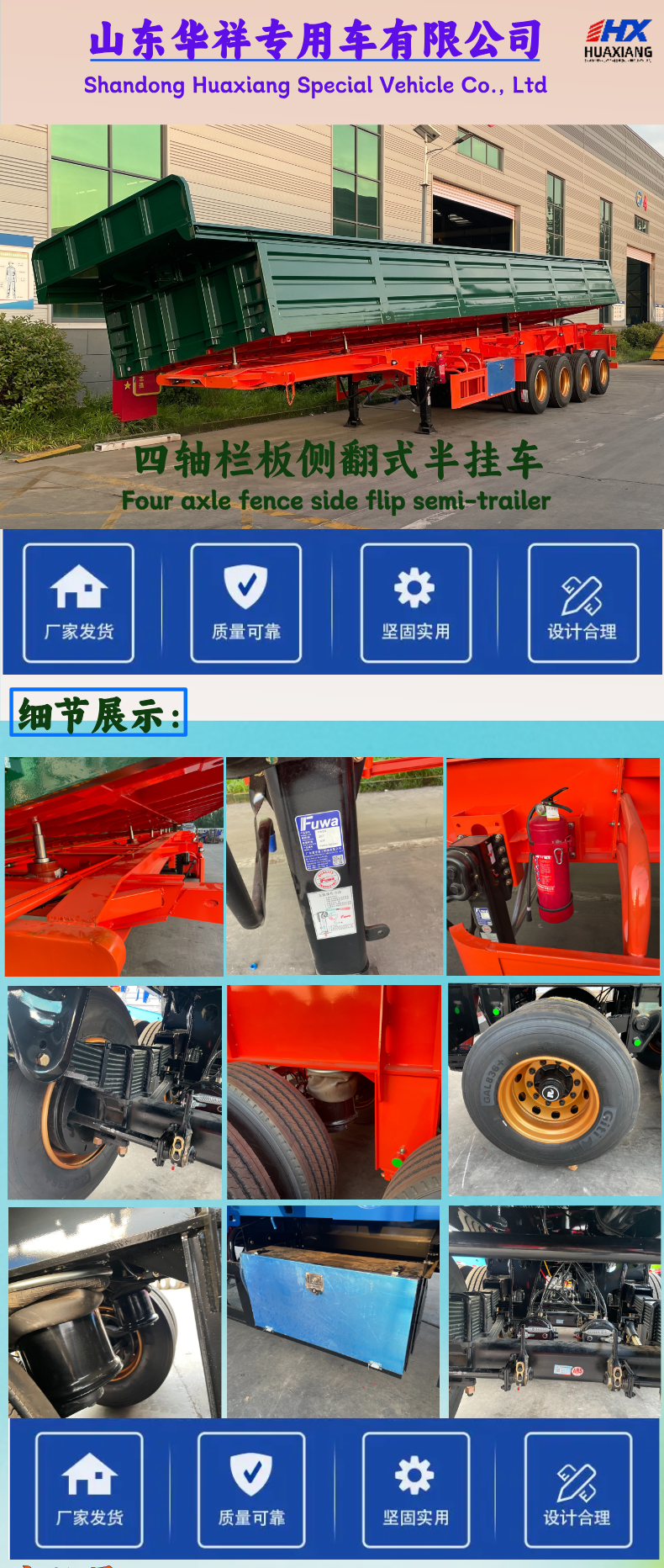 境外出口栏板侧翻半挂车 45立方重型前顶半挂自卸车 华祥生产厂家