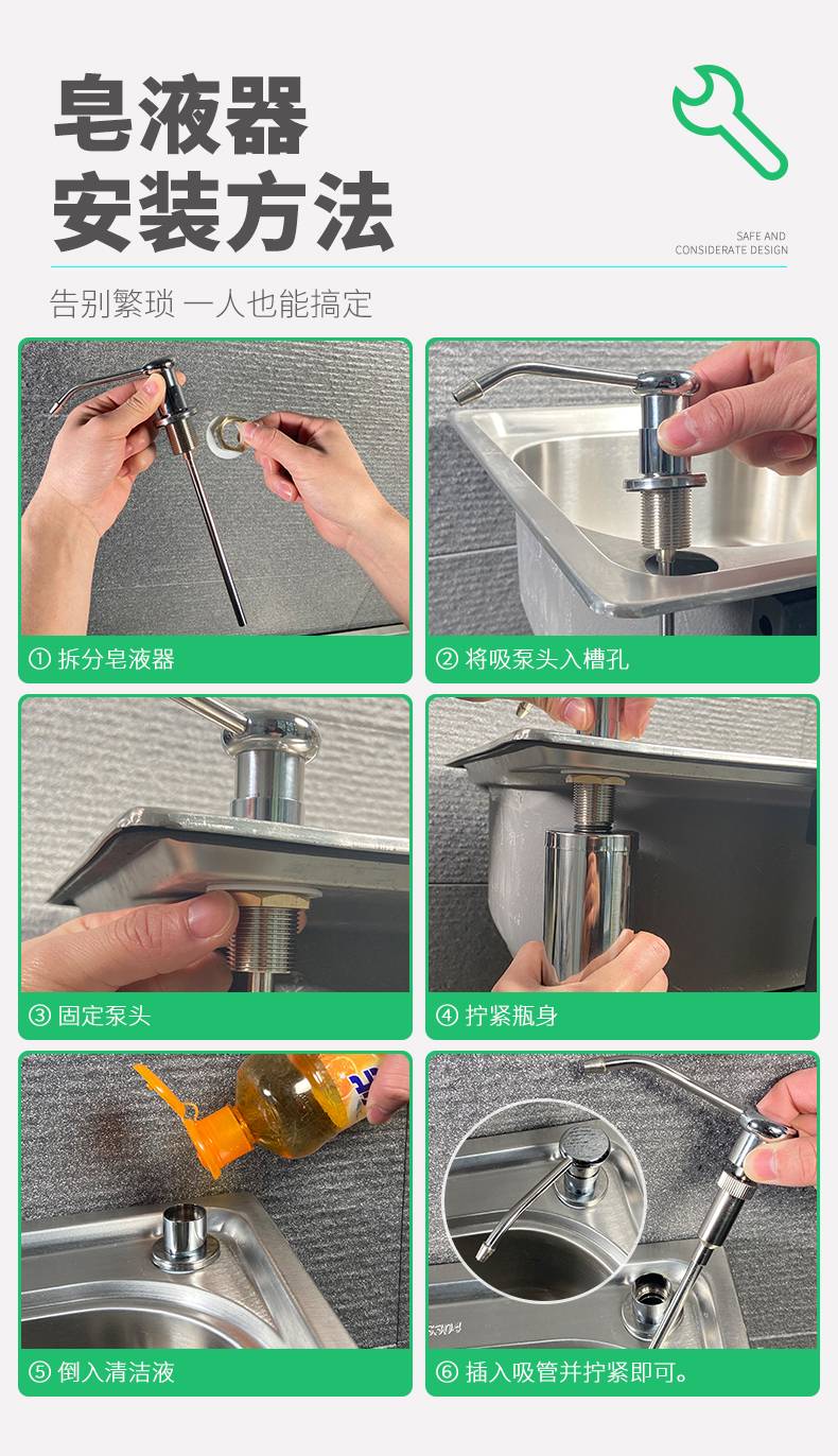 皂液器厨房水槽洗洁精家用菜盆洗碗洗手液不锈钢按压式洗涤剂瓶子