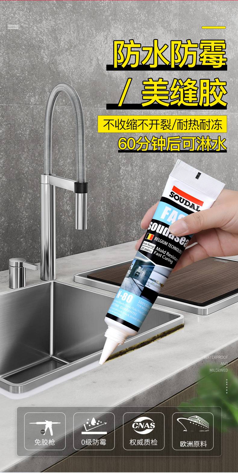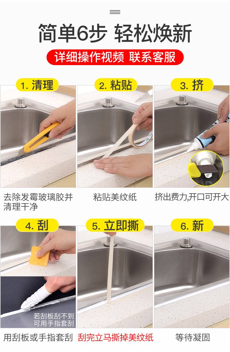 水槽美缝剂厨房浴室手挤型防水防霉马桶底座瓷砖缝隙清洁剂玻璃胶
