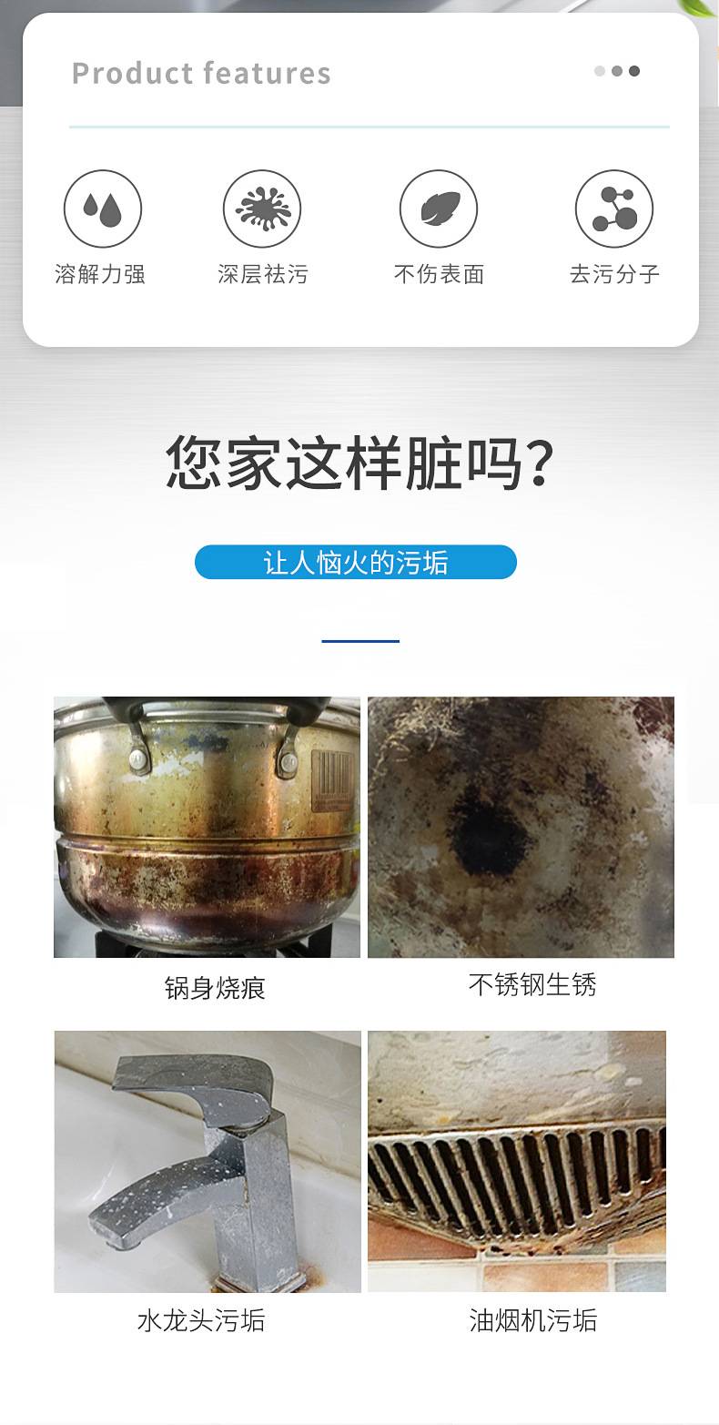 不锈钢清洁剂厨房锅底水槽专用洗菜盆水池除锈强力去污清洗神器