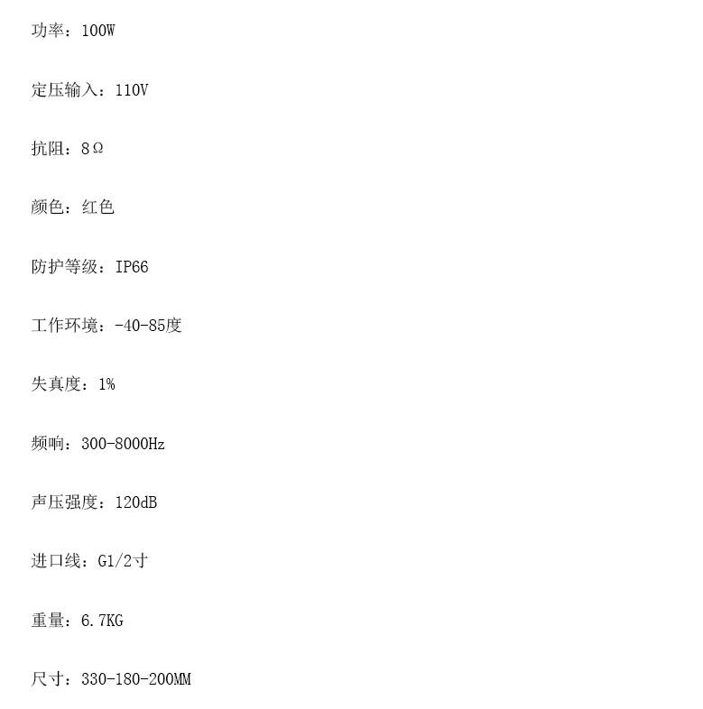 扬声器 300-8000Hz 型号:BYS-3-100W库号:D386942