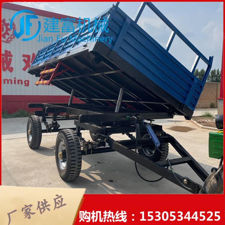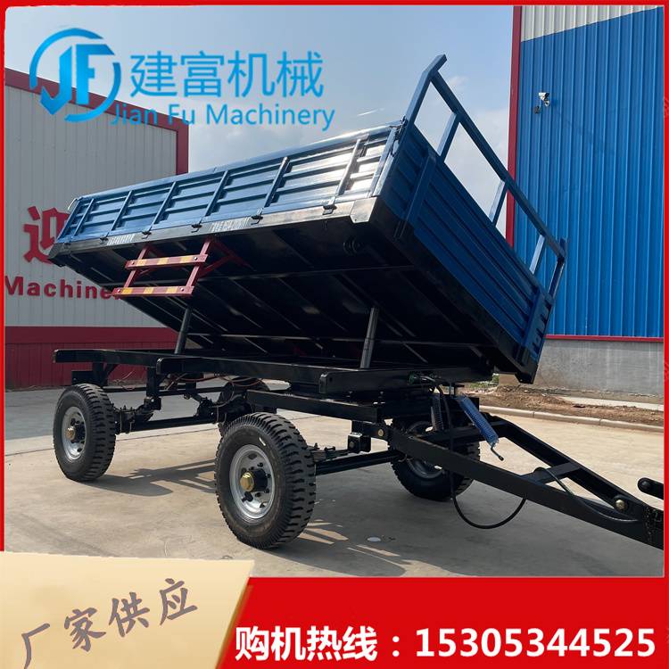 四轮农用拖车 7CX-5 5吨双轴半挂车斗牵引平板拖斗高箱左右自卸挂车