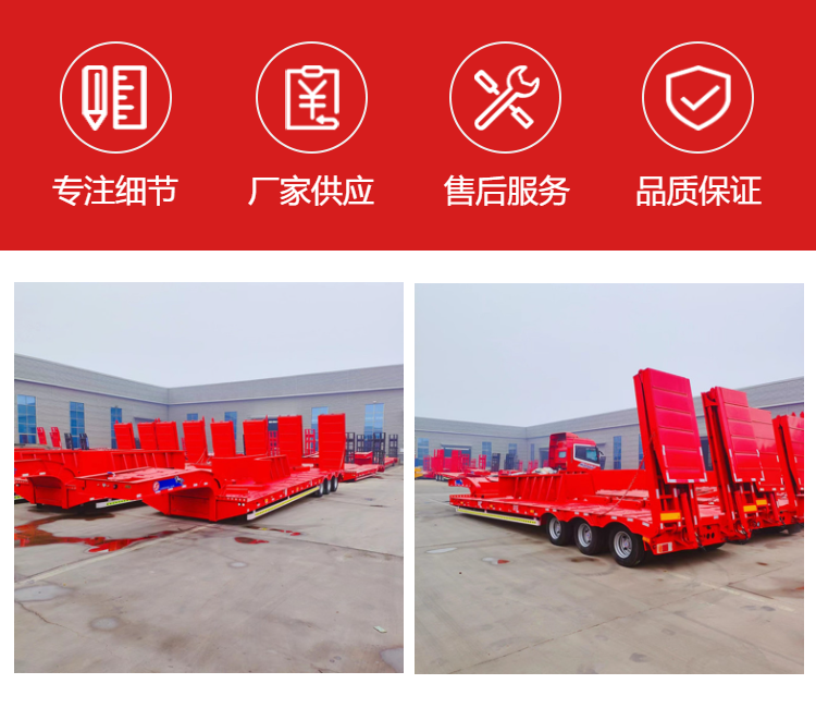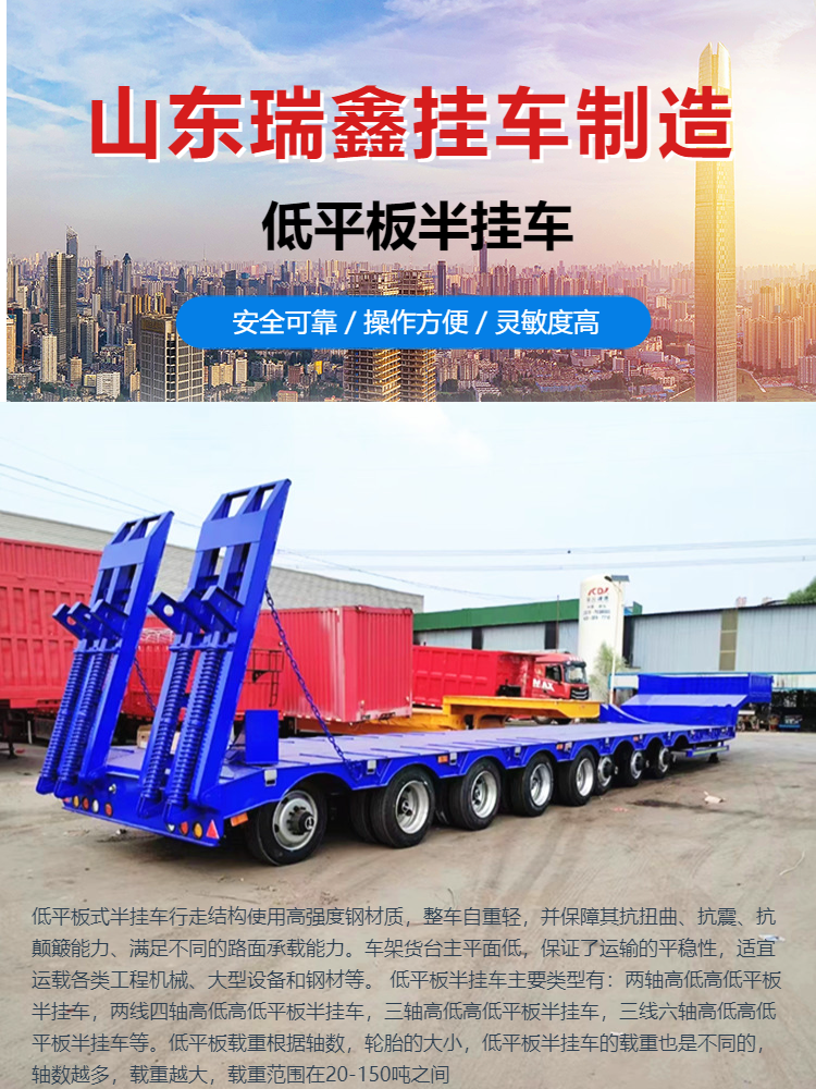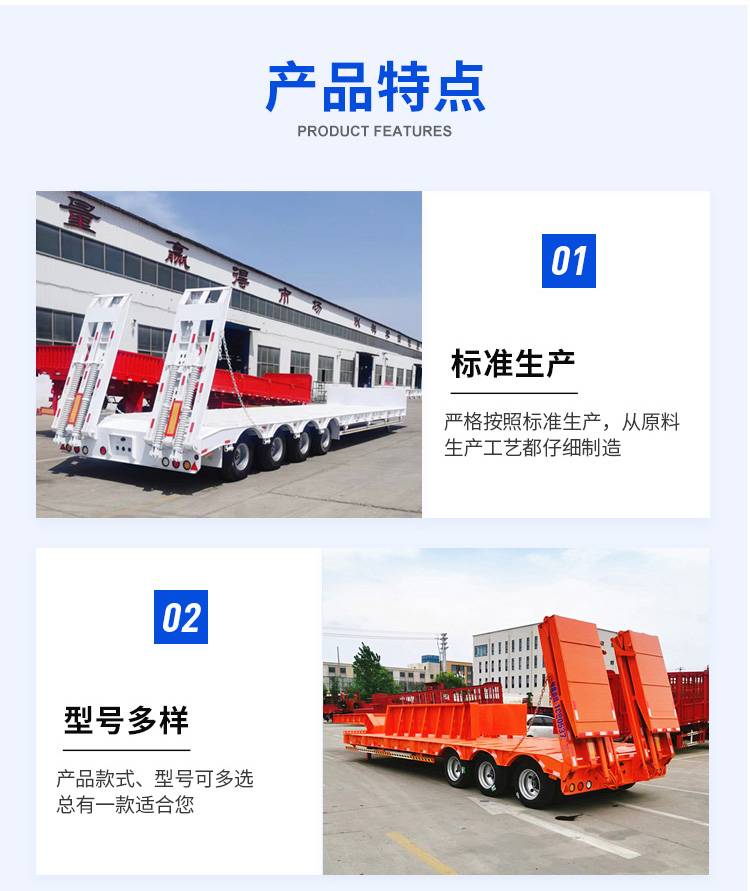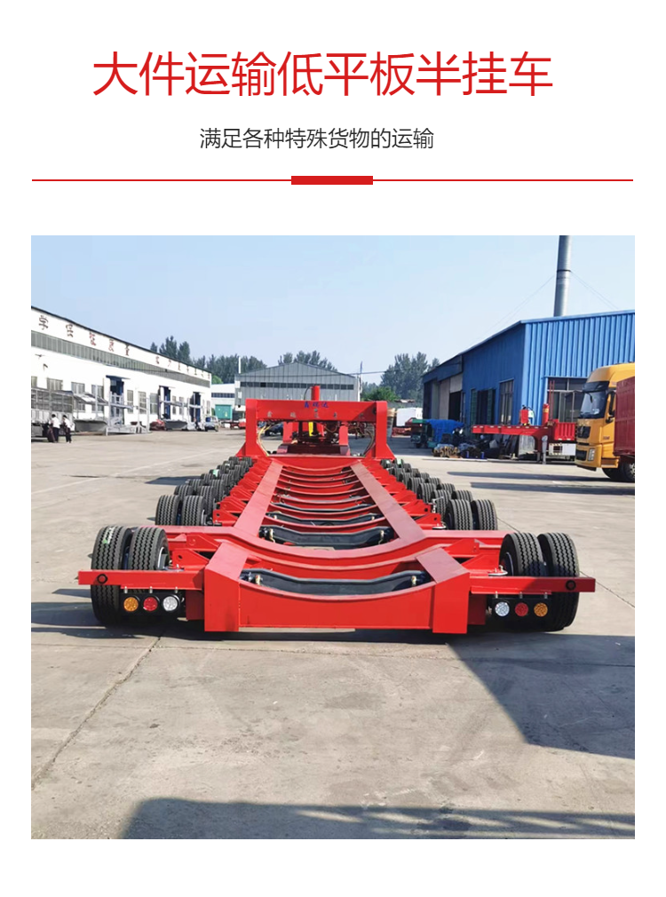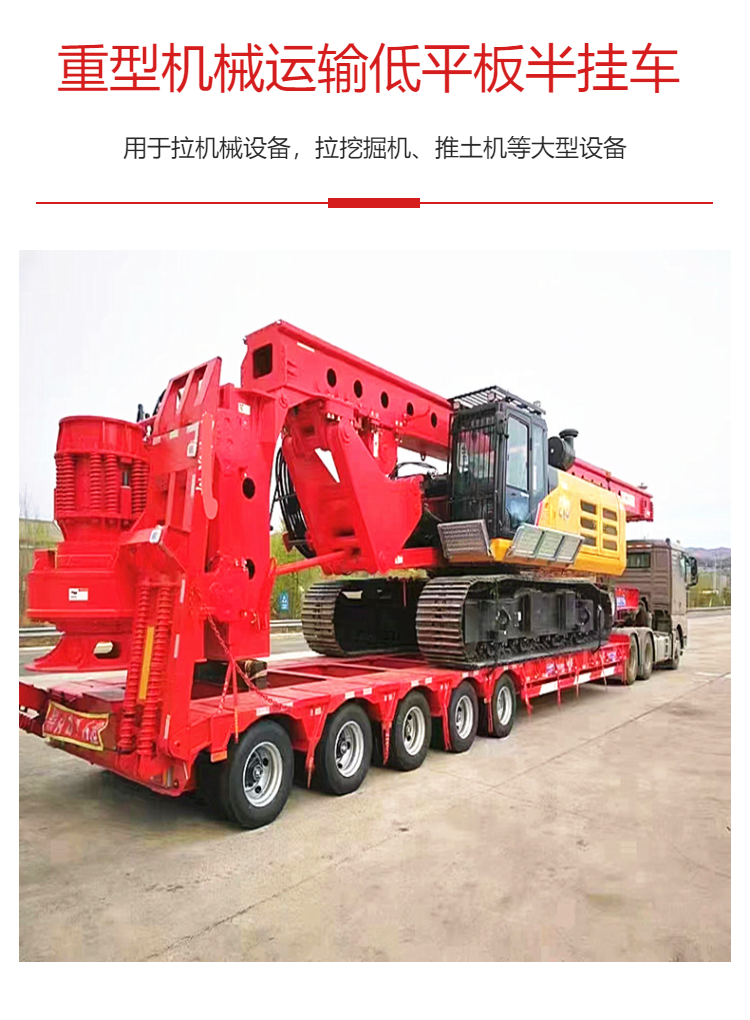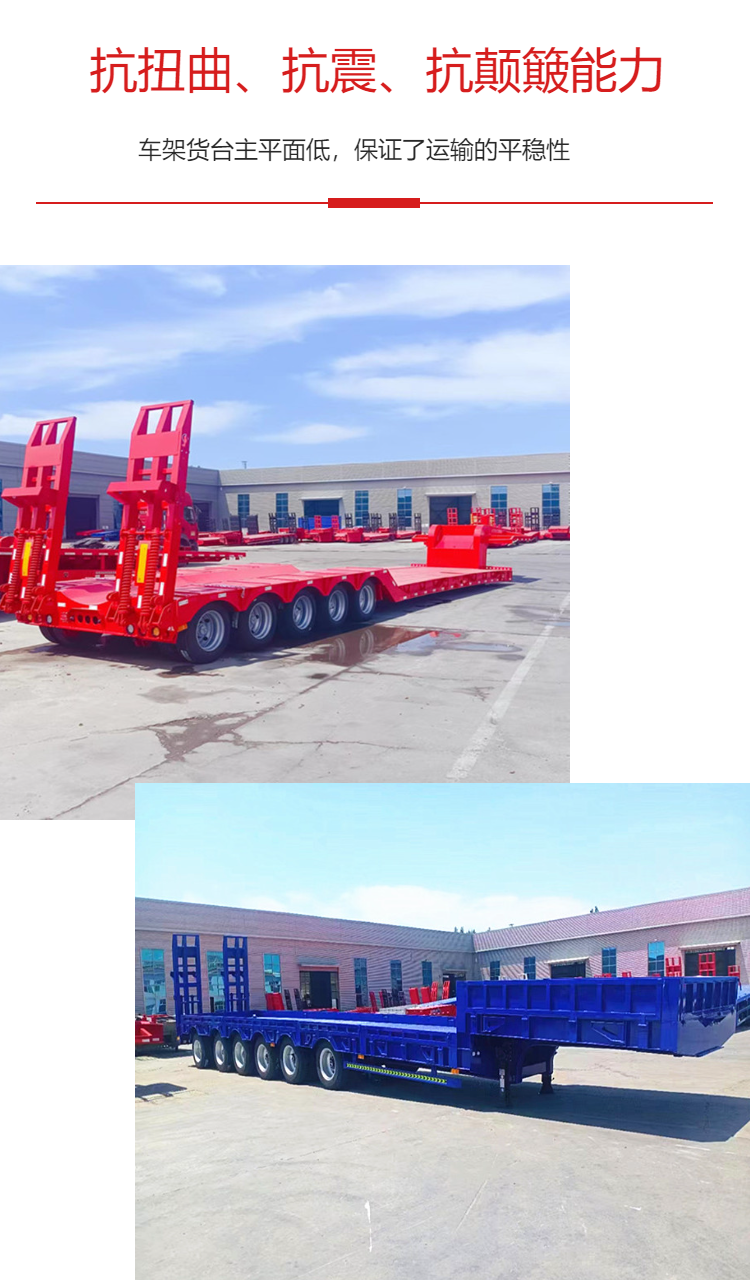 出口低平板半挂车 抽拉式大件运输车 配置气囊提升桥转弯灵活