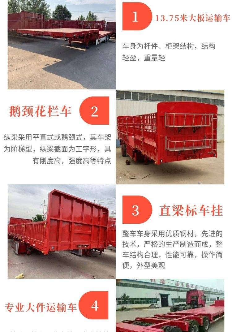 13米轻量化工程运输钩机板 勾机低平板半挂车