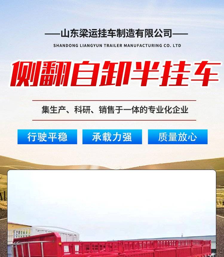 侧翻自卸半挂车 拉沙石物料侧翻运输牵引车 自重轻 可加工定做