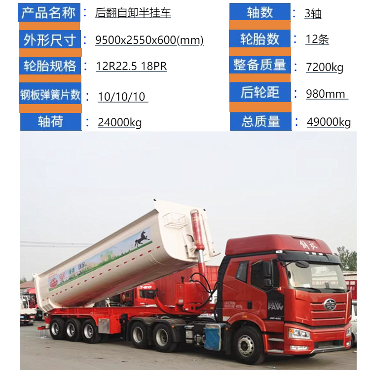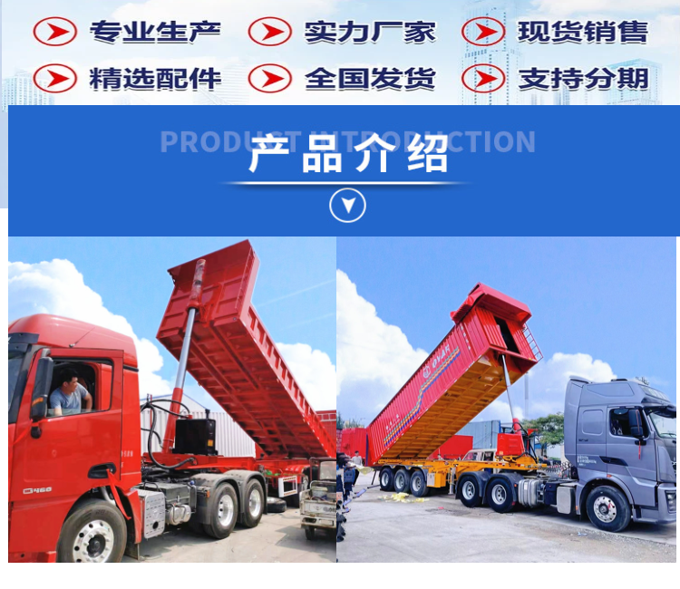 重型牵引半挂自卸车 10米U型后翻半挂车 出口非洲高箱翻斗车
