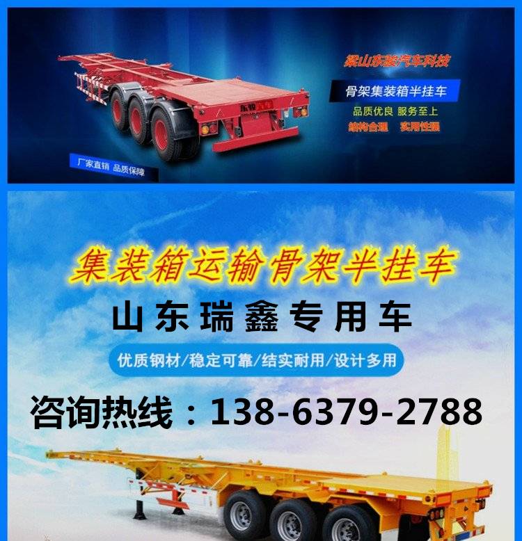 20英尺集装箱运输半挂车 7.5米2轴骨架拖车 短小灵活