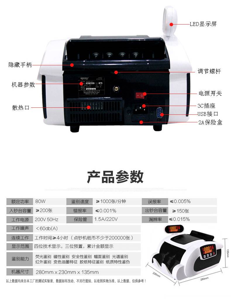 【2022新款】拉克丝银行专用点钞机 验钞机商用收银小型家用收钱