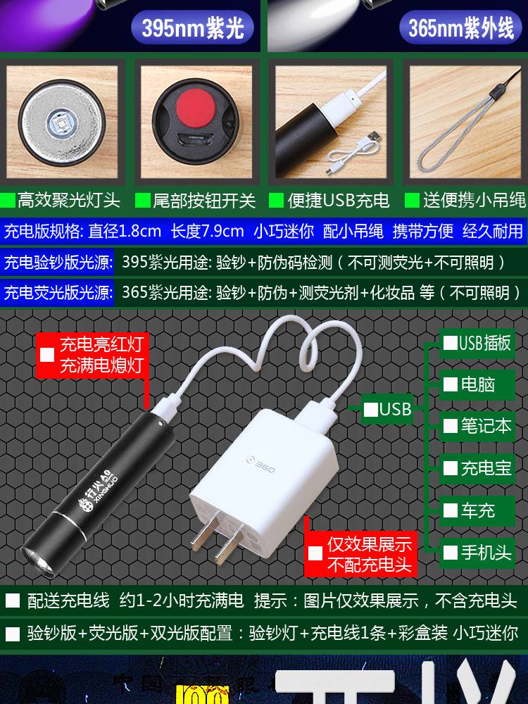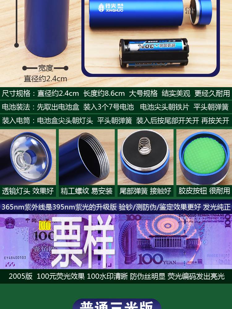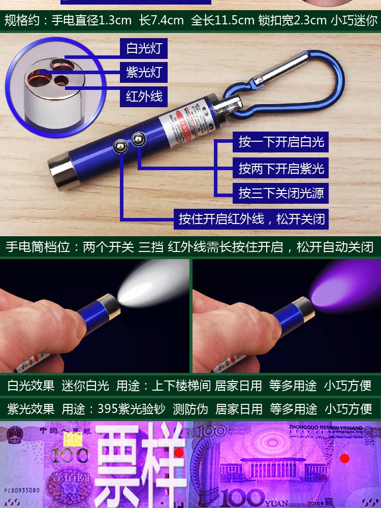 验钞灯笔小型便携式紫外线紫光灯手电筒验钞机家用版蓝光正品鉴定