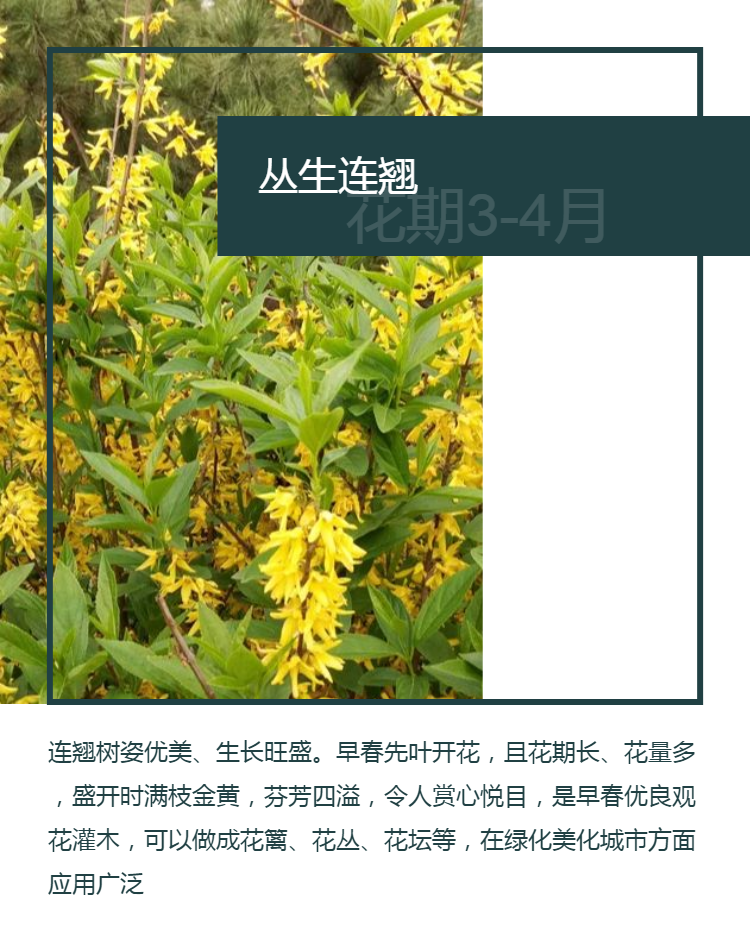连翘 丛生 单杆 树姿优美 生长旺盛 早春先叶开花 且花期长 花量多