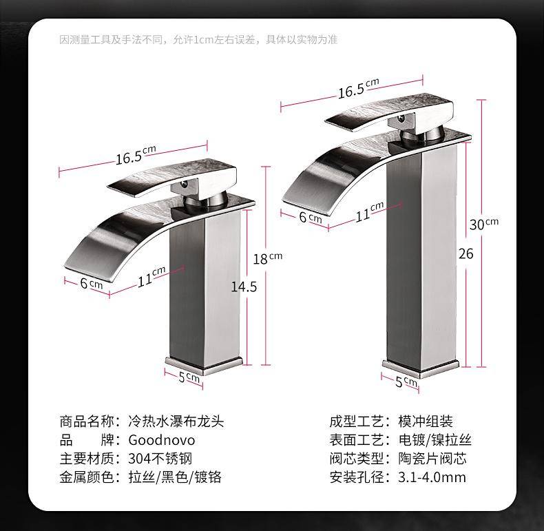 - 标准款-镍拉丝弯嘴瀑布龙头,标准款-亮光银弯嘴瀑布龙头,标准款-幻影黑弯嘴瀑布龙头,加高款-亮光银弯嘴瀑布龙头,加高款-幻影黑弯嘴瀑布龙头,标准款-拉丝金弯嘴瀑布龙头,加高款-拉丝金弯嘴瀑布龙头