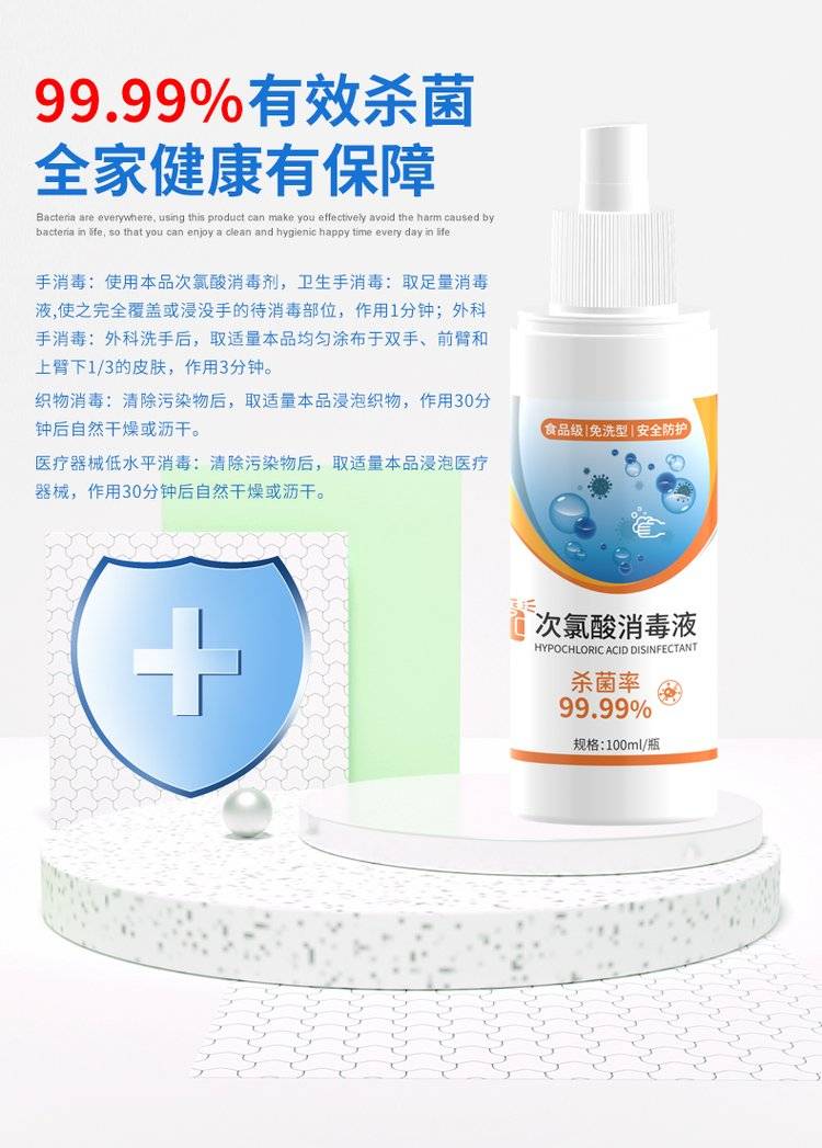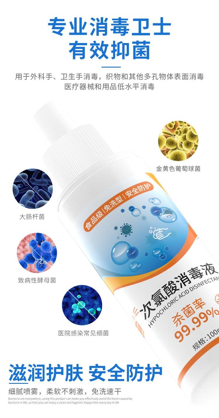 次氯酸消毒液 含氯消毒剂食品级免洗喷雾剂家用室内杀菌 OEM定制