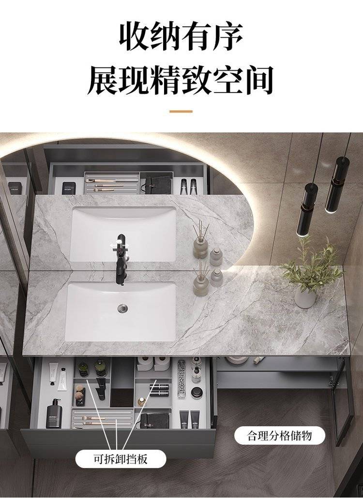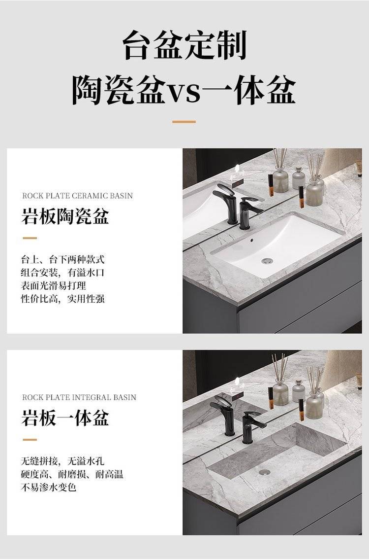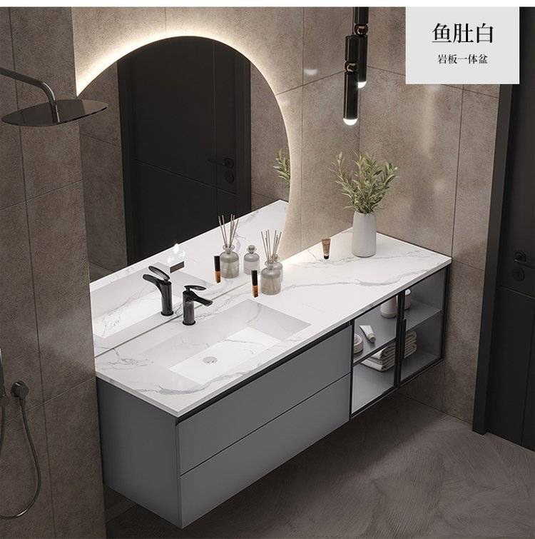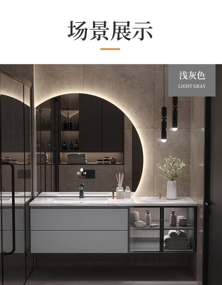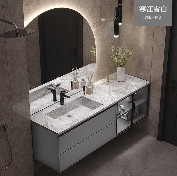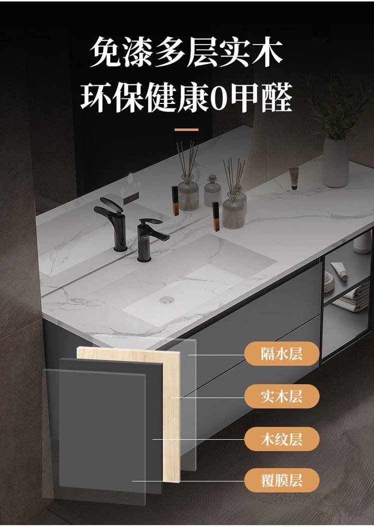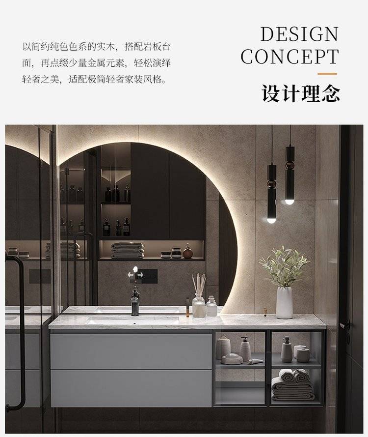 北欧岩板体盆浴室柜组合实木洗手洗脸盆挂墙式卫生间洗漱台定制