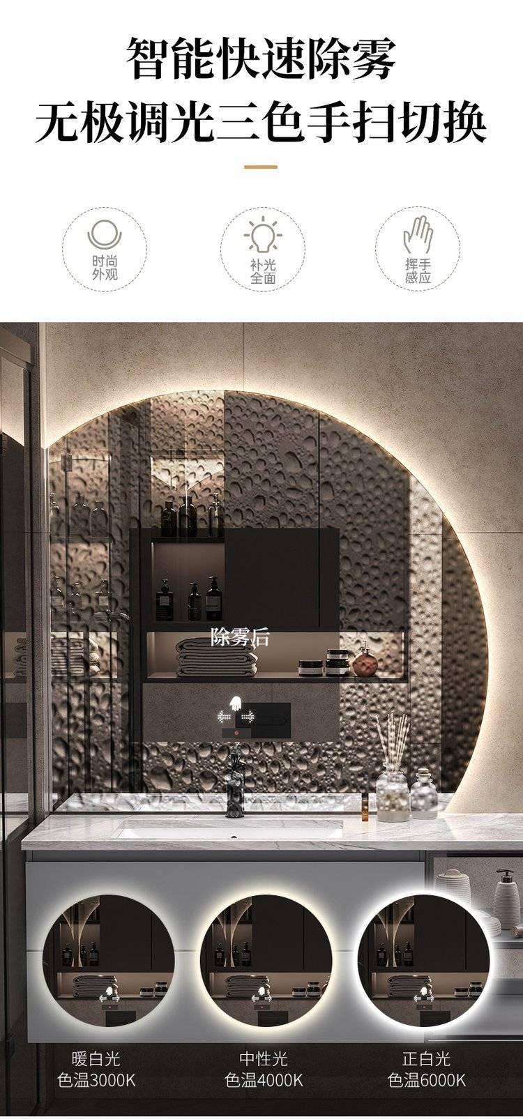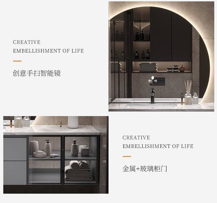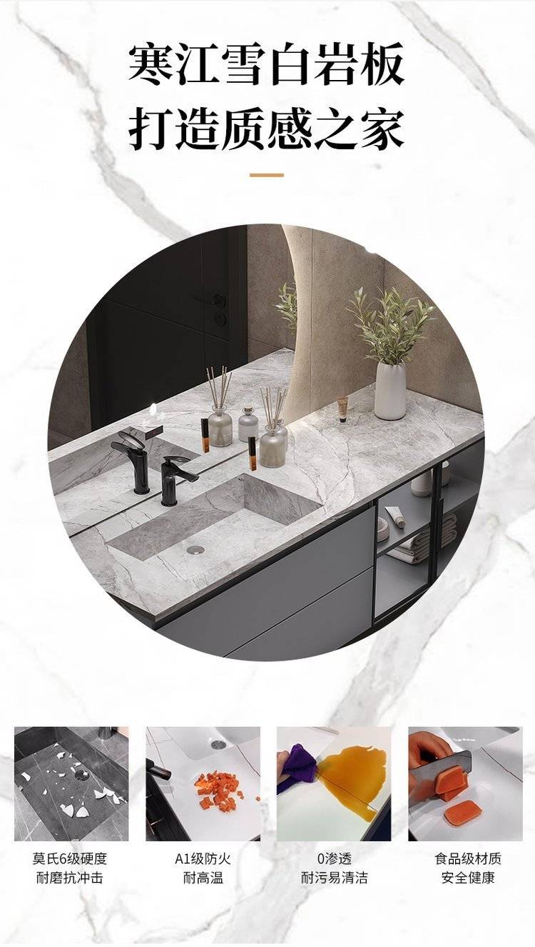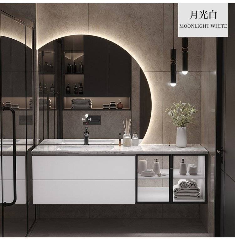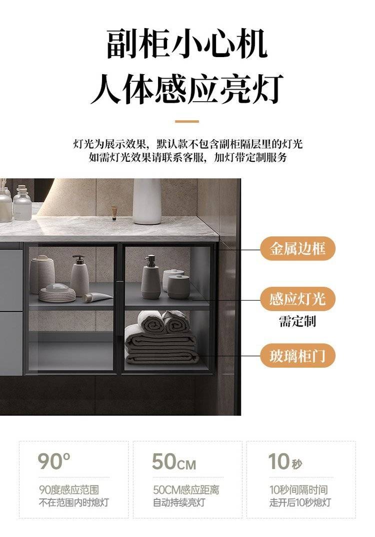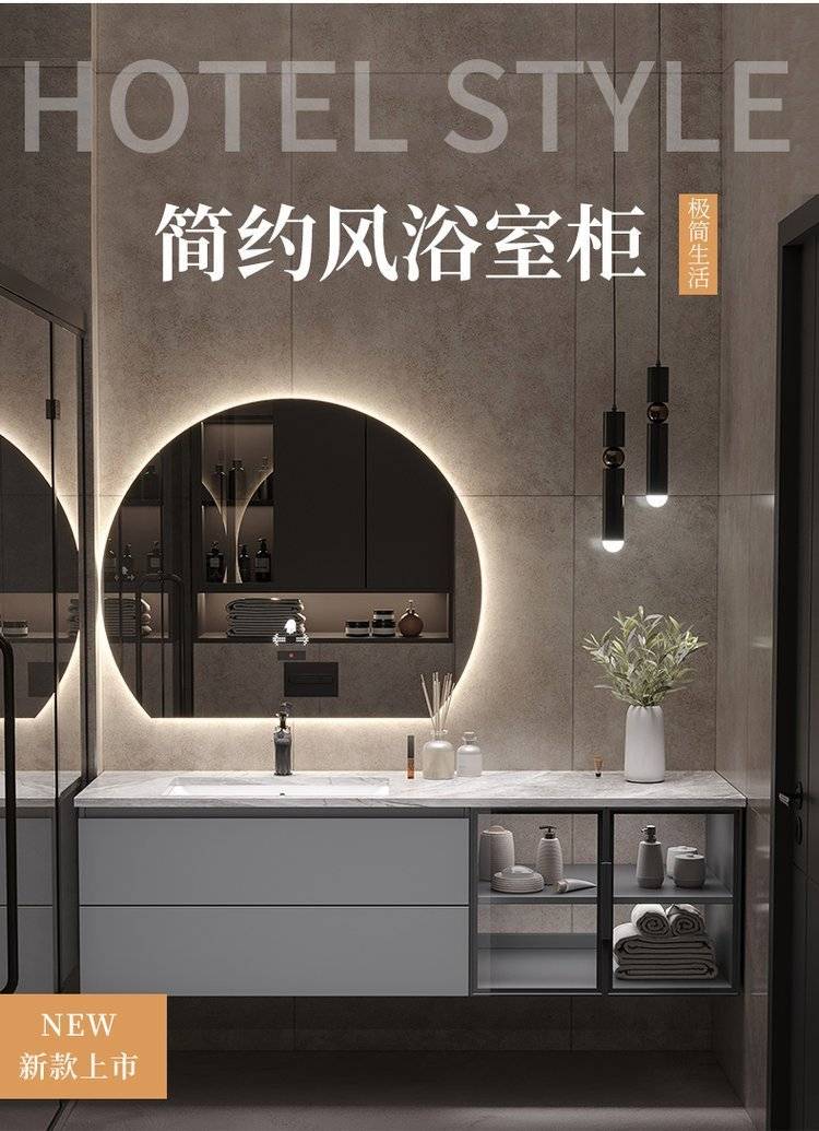 北欧岩板体盆浴室柜组合实木洗手洗脸盆挂墙式卫生间洗漱台定制