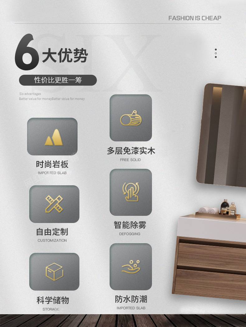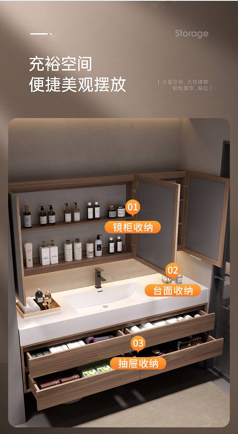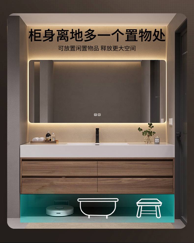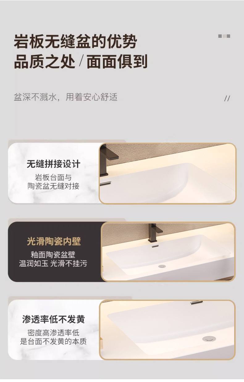 岩板无缝陶瓷一体盆浴室柜组合现代简约卫生间洗手台洗脸盆洗漱台