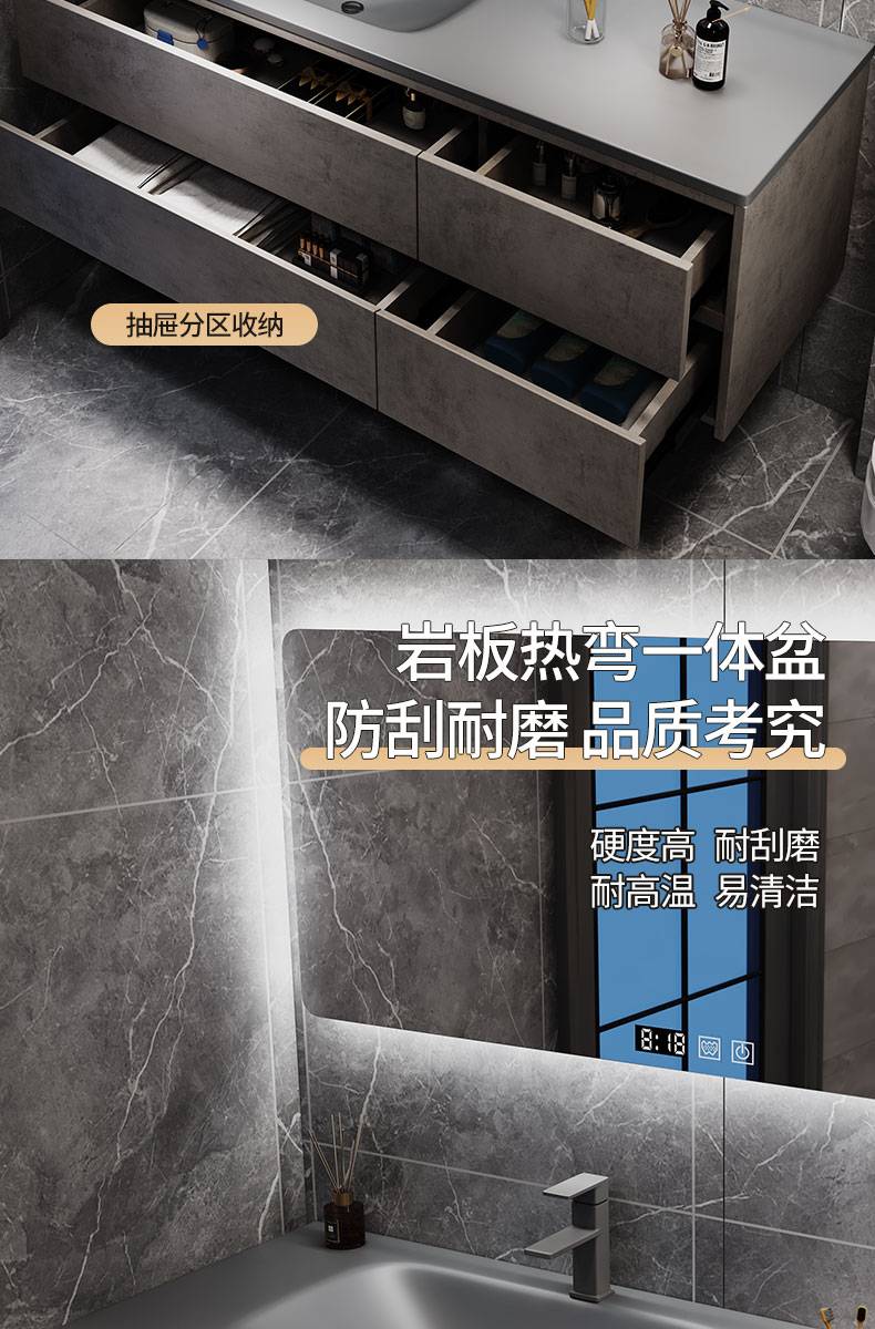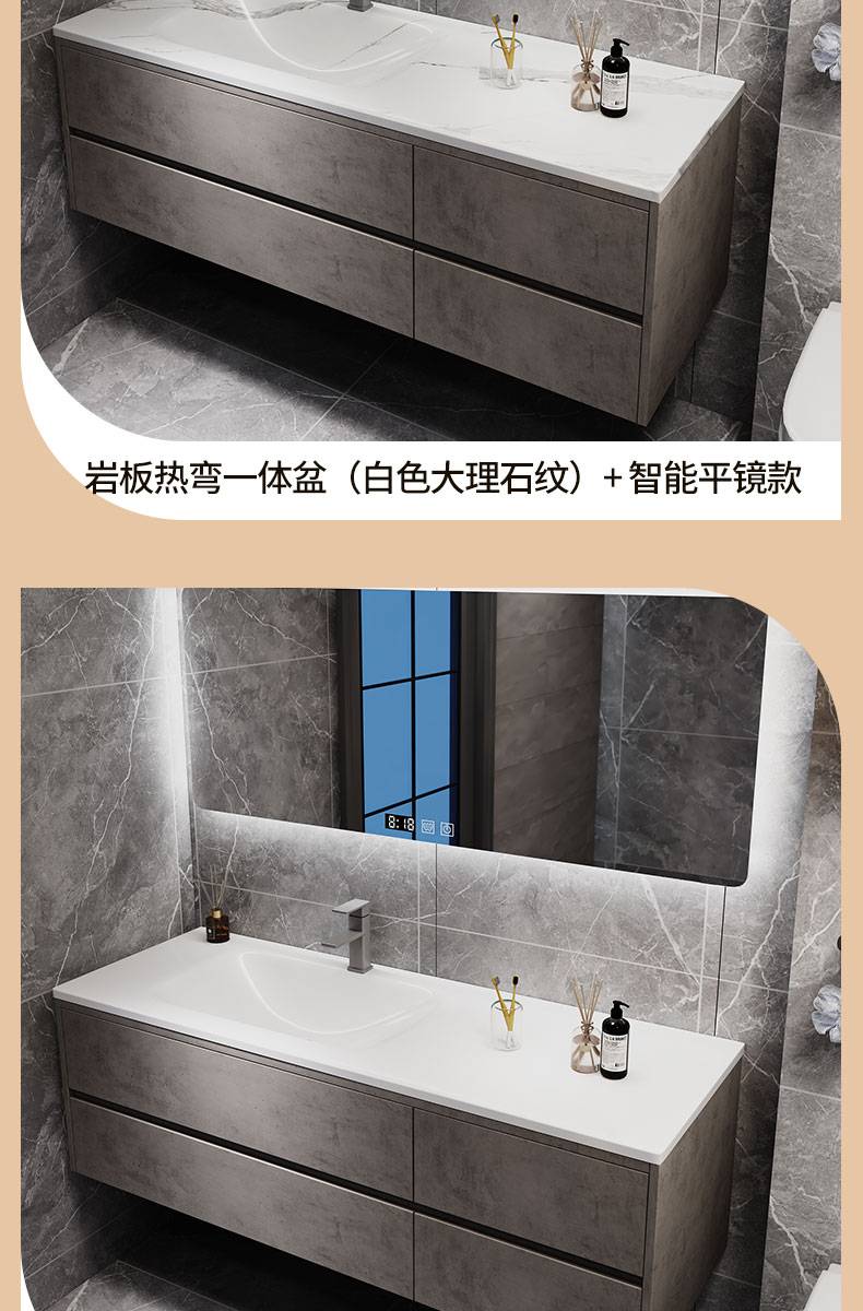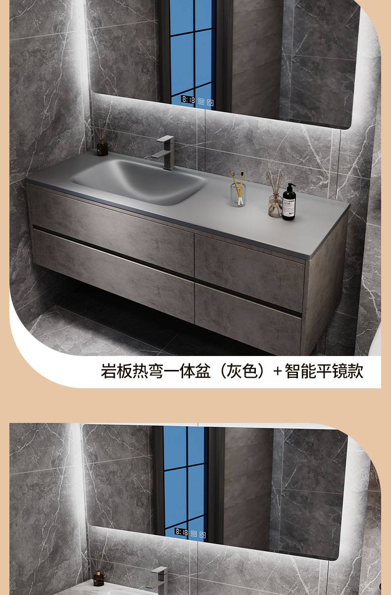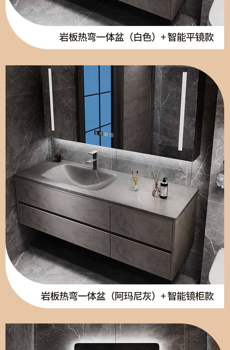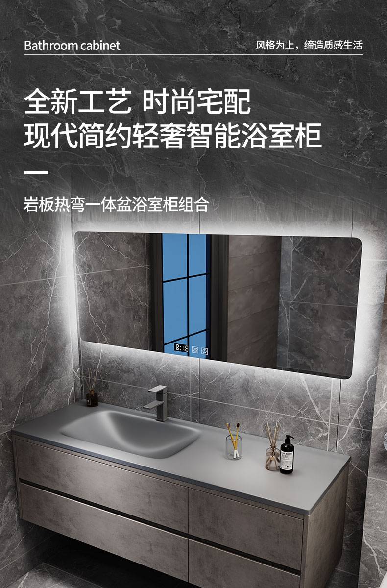 IL岩板热弯一体盆现代简约智能卫生间浴室柜镜柜洗漱台洗手洗脸盆