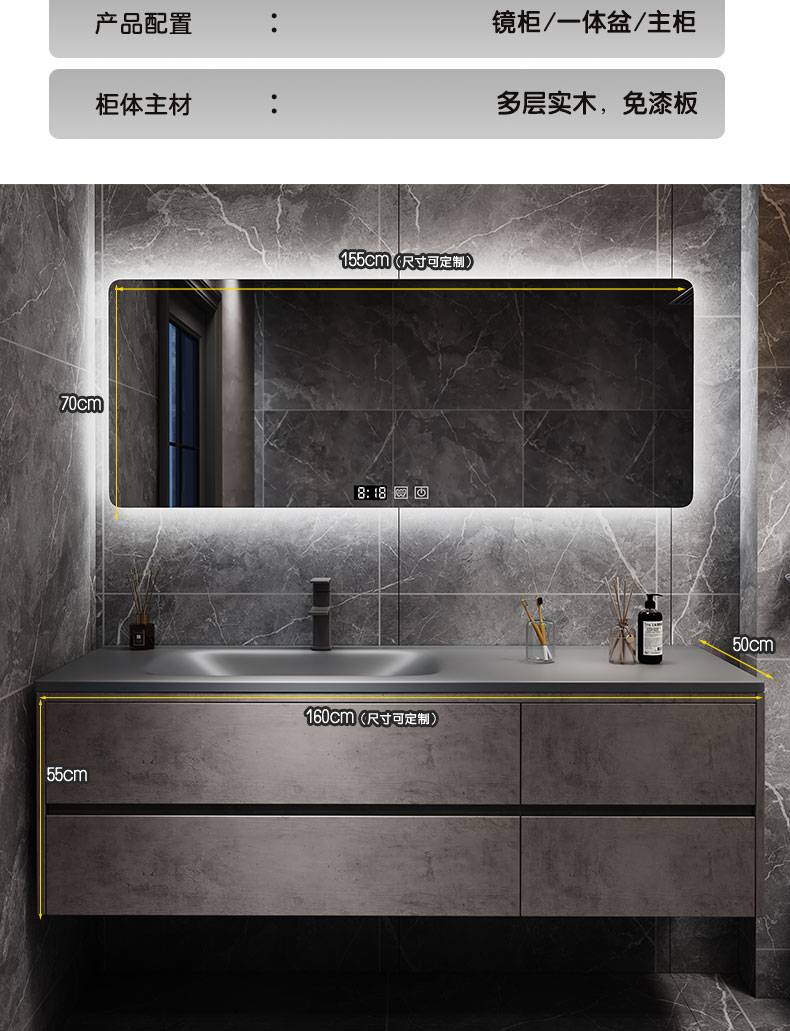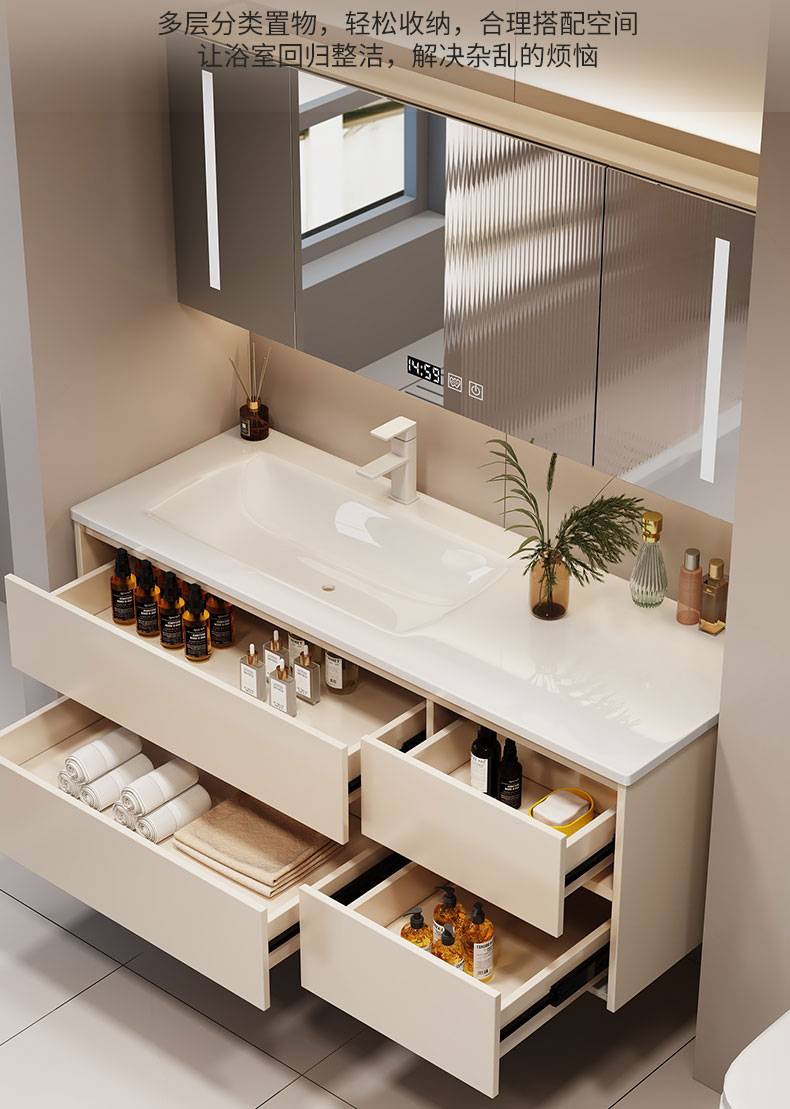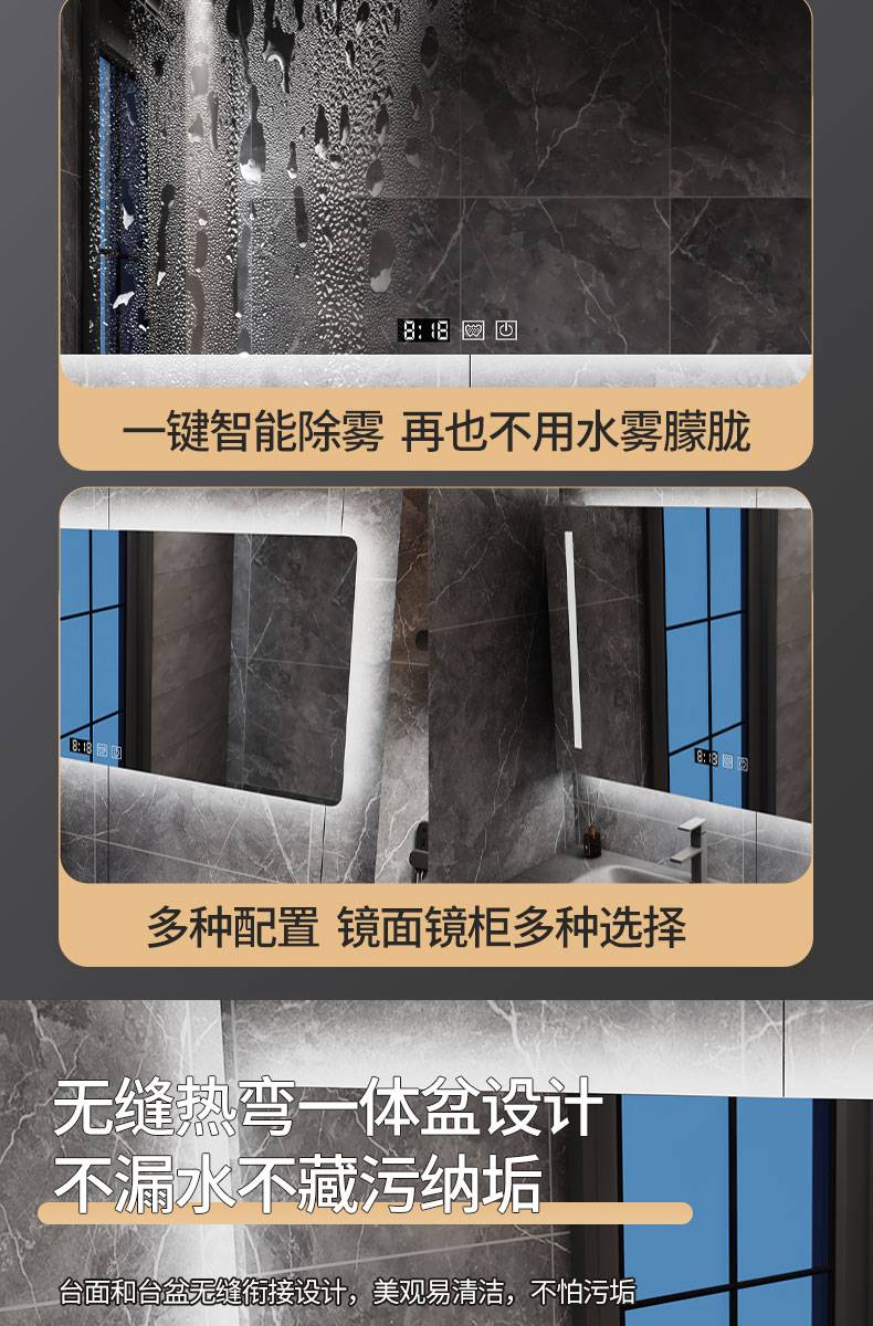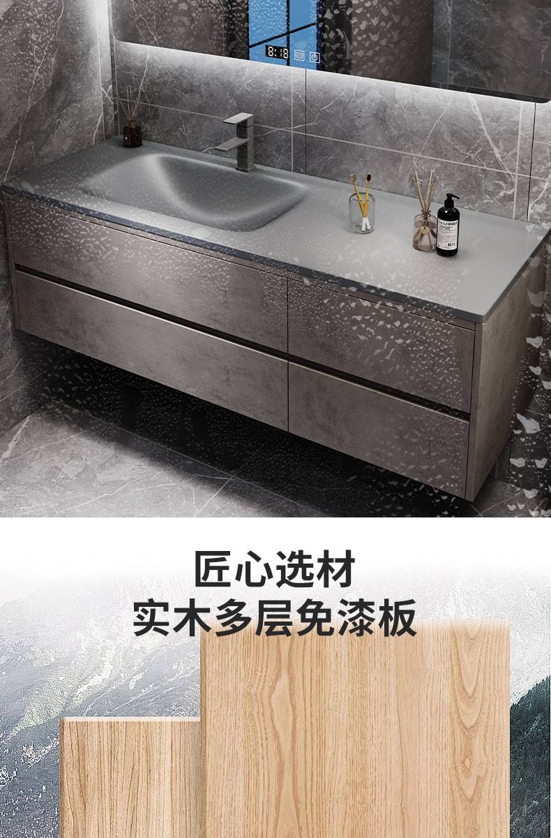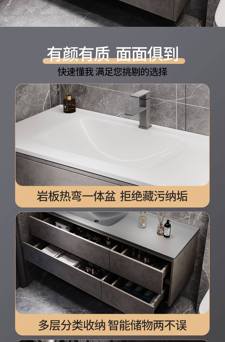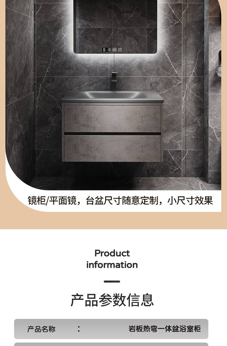 IL岩板热弯一体盆现代简约智能卫生间浴室柜镜柜洗漱台洗手洗脸盆